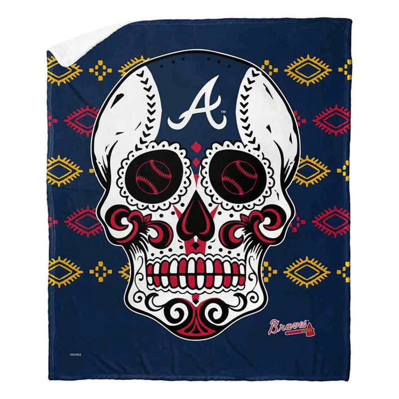 MLB Atlanta Braves Candy Skull Silk Touch Sherpa Throw Blanket 50x60 Inches