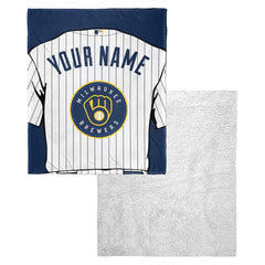 MLB Milwaukee Brewers Jersey Personalized Silk Touch Sherpa Throw Blanket 50x60 Inches
