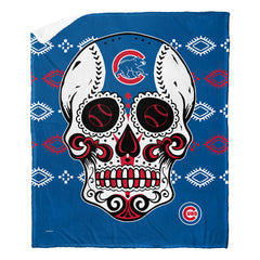 MLB Chicago Cubs Candy Skull Silk Touch Sherpa Throw Blanket 50x60 Inches