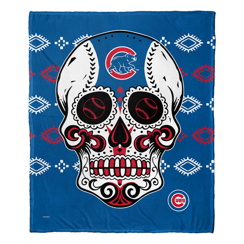 MLB Chicago Cubs Candy Skull Silk Touch Throw Blanket 50x60 Inches