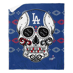 MLB Los Angeles Dodgers Candy Skull Silk Touch Sherpa Throw Blanket 50x60 Inches