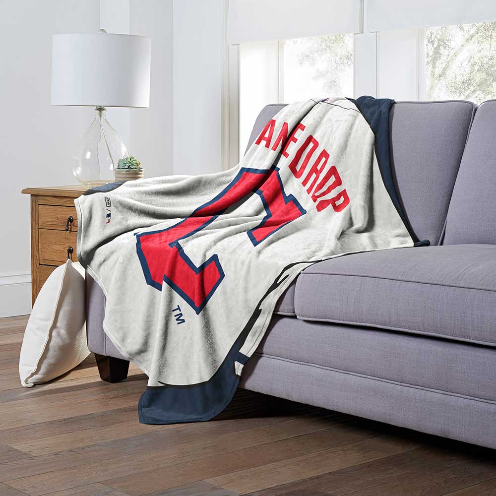 Proudly show off your favorite baseball team with this Officially Licensed MLB "Jersey" Personalized Silk Touch Throw Blanket by TheNorthwest. This 50"x 60" warm and cozy silk touch features your personalization above the team logo on a sports jersey design with a neutral color back. Give this personalized throw as an extra special gift or personalize one for yourself! It's the perfect game day accessory for your home.