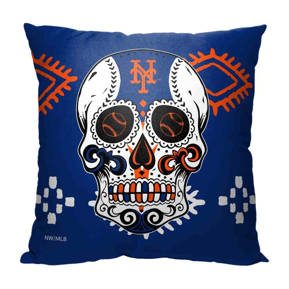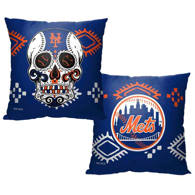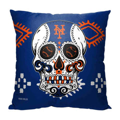 MLB New York Mets Candy Skull Throw Pillow 18x18 Inches