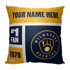 MLB Milwaukee Brewers Colorblock Personalized Throw Pillow 18x18 Inches