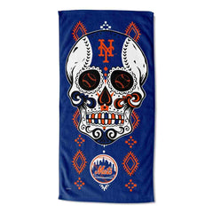 MLB New York Mets Candy Skull Beach Towel 30x60 Inches