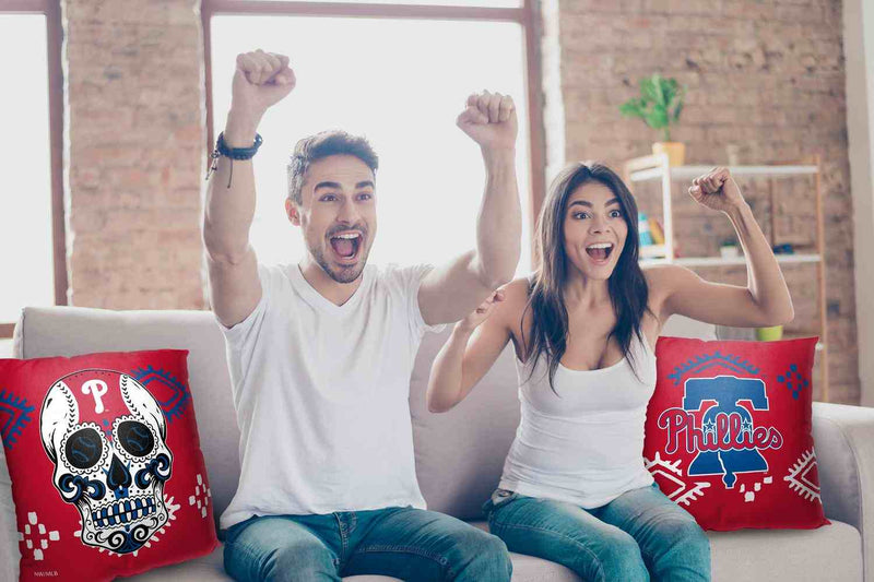 MLB Philadelphia Phillies Candy Skull Throw Pillow 18x18 Inches