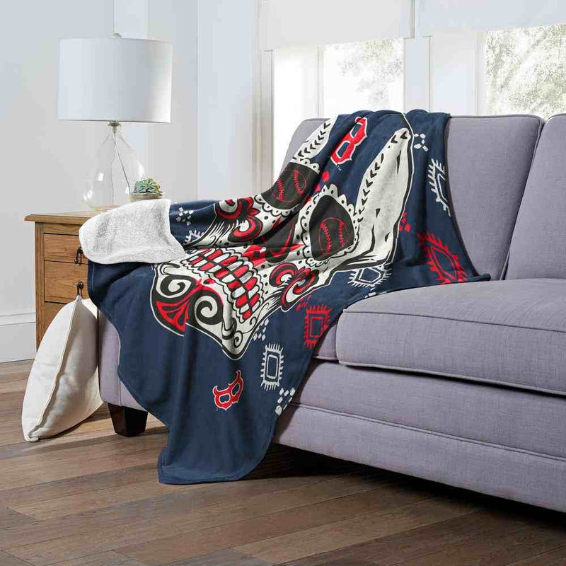 MLB Boston Red Sox Candy Skull Silk Touch Sherpa Throw Blanket 50x60 Inches