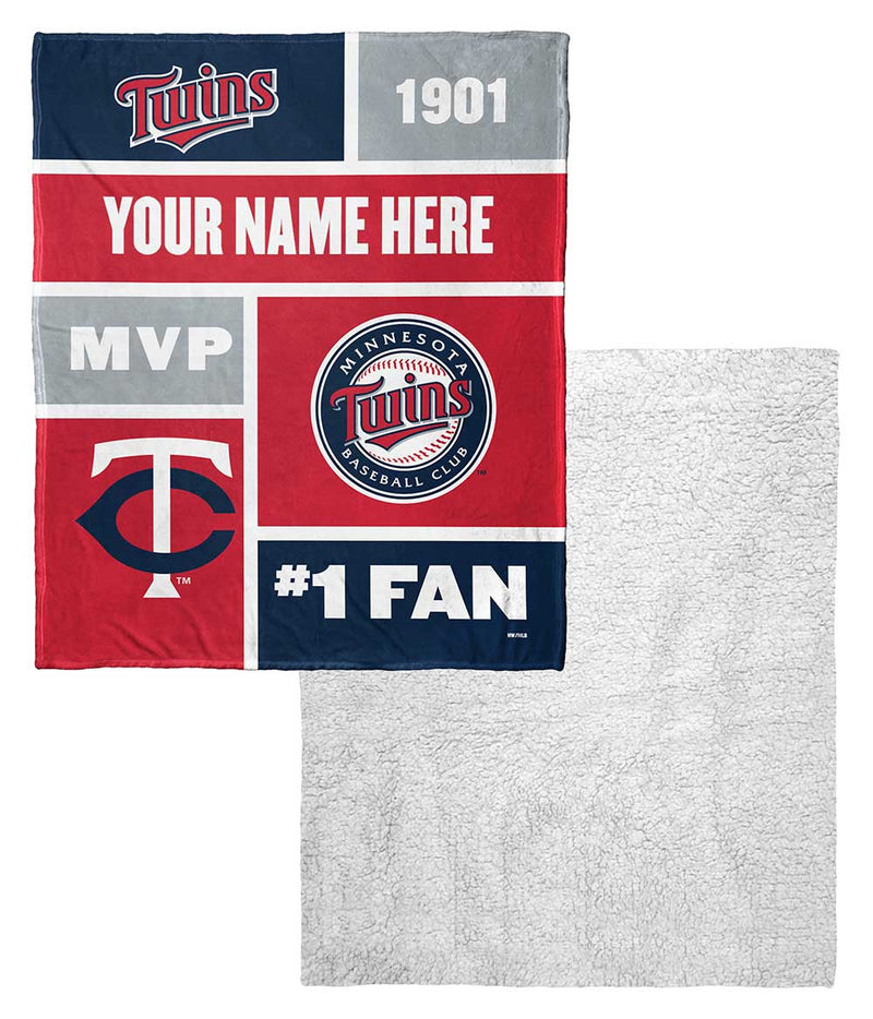 MLB Minnesota Twins Colorblock Personalized Silk Touch Sherpa Throw Blanket 50x60 Inches