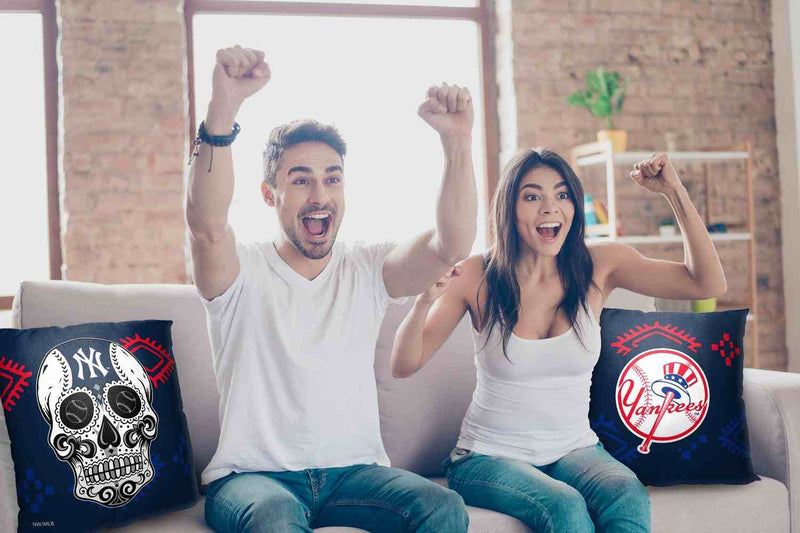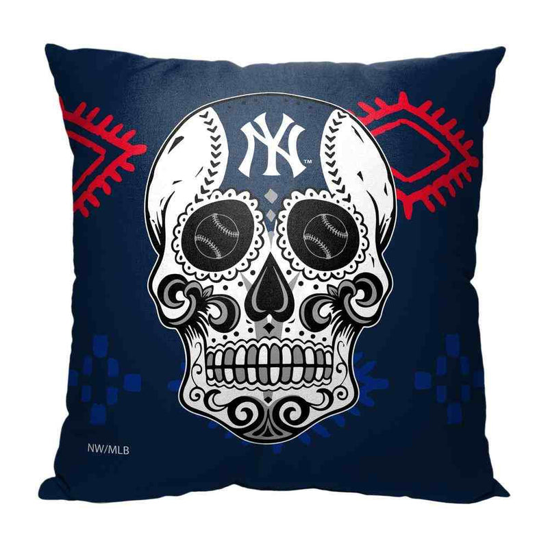 MLB New York Yankees Candy Skull Throw Pillow 18x18 Inches