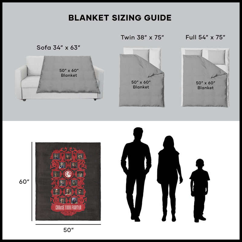 Step into battle with the Mortal Kombat "Choose Your Fighter" Silk Touch Throw Blanket, featuring a full character grid inspired by the classic fighter selection screen. Highlighted in bold red against a black backdrop, the lineup includes fan-favorite warriors like Sub-Zero, Kitana, Liu Kang, Scorpion, Mileena, and more¡ªall framed in ornate, tournament-ready motifs. Made with luxuriously soft silk touch fabric, this blanket is perfect for powering through gaming sessions or leveling up your d¨¦cor. Vivid colors and high-resolution character portraits deliver striking detail, while the central Mortal Kombat dragon emblem brings tournament energy to any space. Whether you¡¯re lounging at home or gearing up for kombat, this throw adds comfort with an edge. Choose your champion and wrap yourself in the legacy of one of gaming¡¯s most iconic franchises.