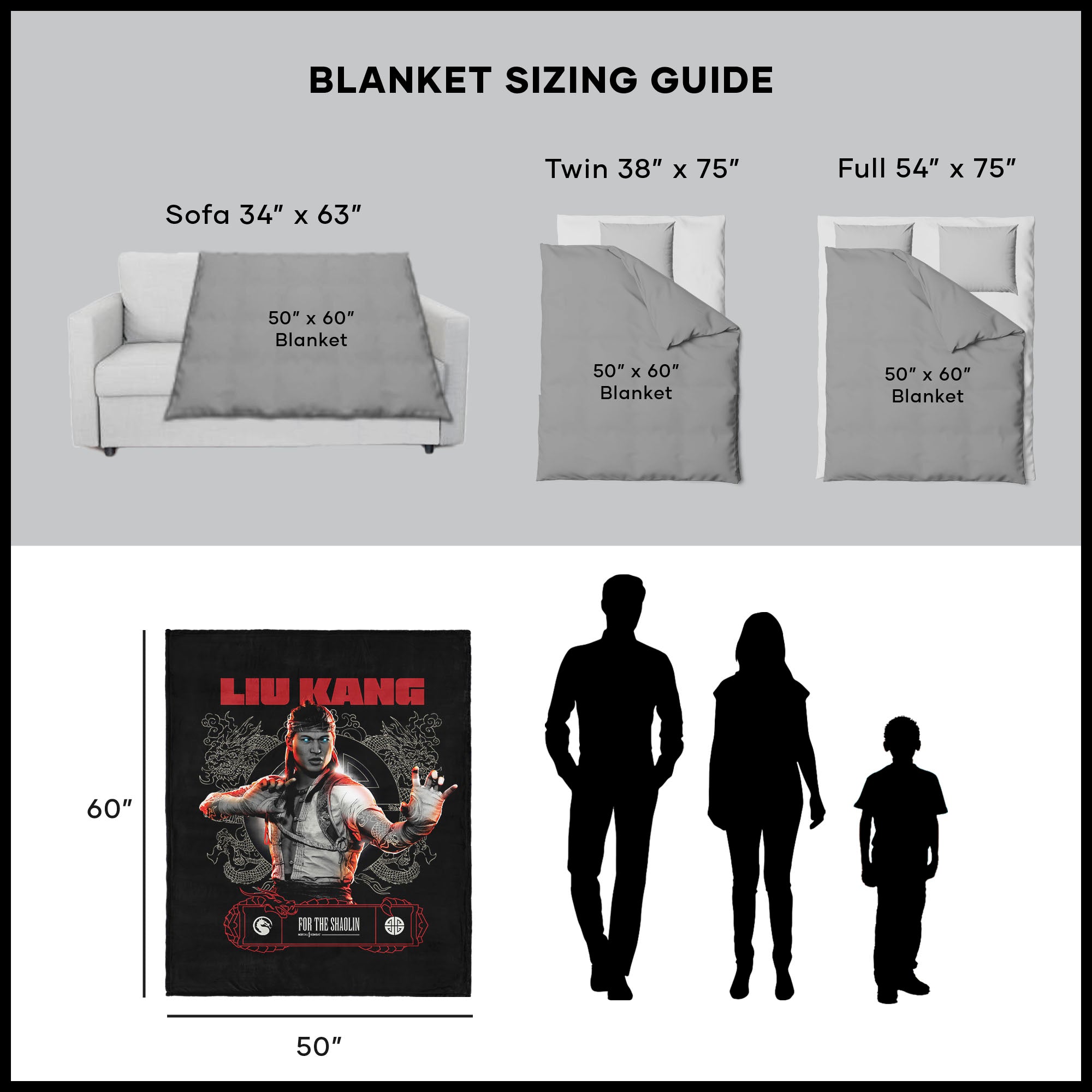 Liu Kang leads with honor on the Mortal Kombat ¡°For the Shaolin¡± Silk Touch Sherpa Throw Blanket, captured in an electrifying battle stance against a backdrop of legendary dragons. Featuring a detailed graphic of the fire-wielding warrior with glowing eyes and iconic martial arts gear, the design includes his bold name across the top and his rallying cry ¡°For the Shaolin¡± framed below alongside the Mortal Kombat and Shaolin symbols. Made with luxuriously soft silk touch fabric, the blanket combines comfort and style with every use. Lightweight yet warm, it¡¯s ideal for lounging on the couch, layering on your bed, or staying cozy while gaming. The high-resolution print enhances every detail, from Liu Kang¡¯s determined expression to the intricate dragon linework surrounding him. Power up your space with a tribute to one of Mortal Kombat¡¯s most legendary heroes. Perfect for longtime fans or new warriors, this blanket brings Shaolin strength and energy into your everyday routine.