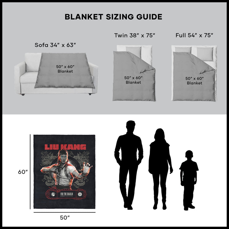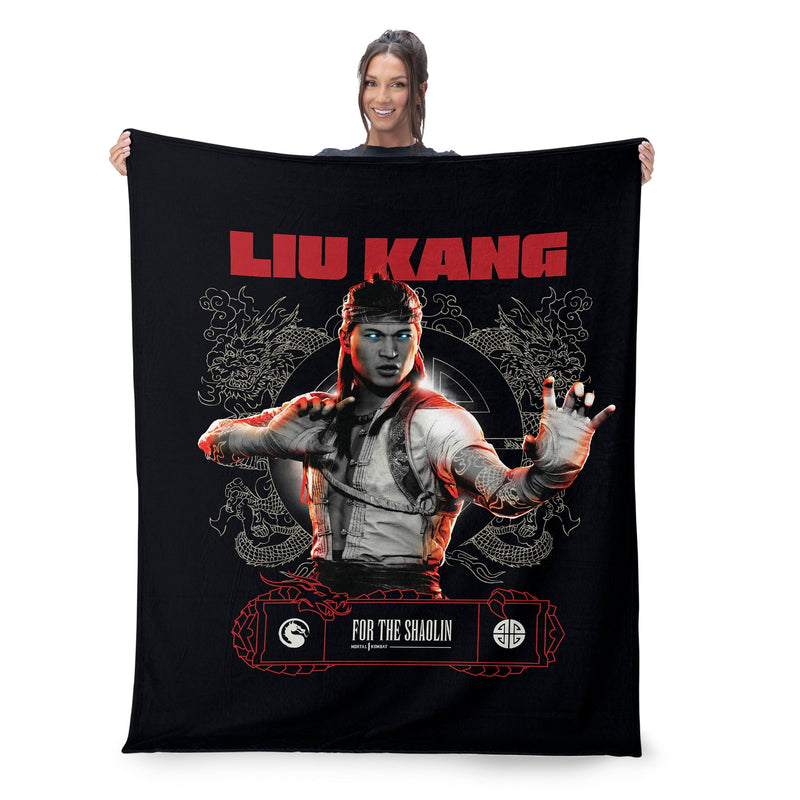 Liu Kang leads with honor on the Mortal Kombat "For the Shaolin" Silk Touch Throw Blanket, captured in an electrifying battle stance against a backdrop of legendary dragons. Featuring a detailed graphic of the fire-wielding warrior with glowing eyes and iconic martial arts gear, the design includes his bold name across the top and his rallying cry ¡°For the Shaolin¡± framed below alongside the Mortal Kombat and Shaolin symbols. Made with luxuriously soft silk touch fabric, the blanket combines comfort and style with every use. Lightweight yet warm, it¡¯s ideal for lounging on the couch, layering on your bed, or staying cozy while gaming. The high-resolution print enhances every detail, from Liu Kang¡¯s determined expression to the intricate dragon linework surrounding him. Power up your space with a tribute to one of Mortal Kombat¡¯s most legendary heroes. Perfect for longtime fans or new warriors, this blanket brings Shaolin strength and energy into your everyday routine.