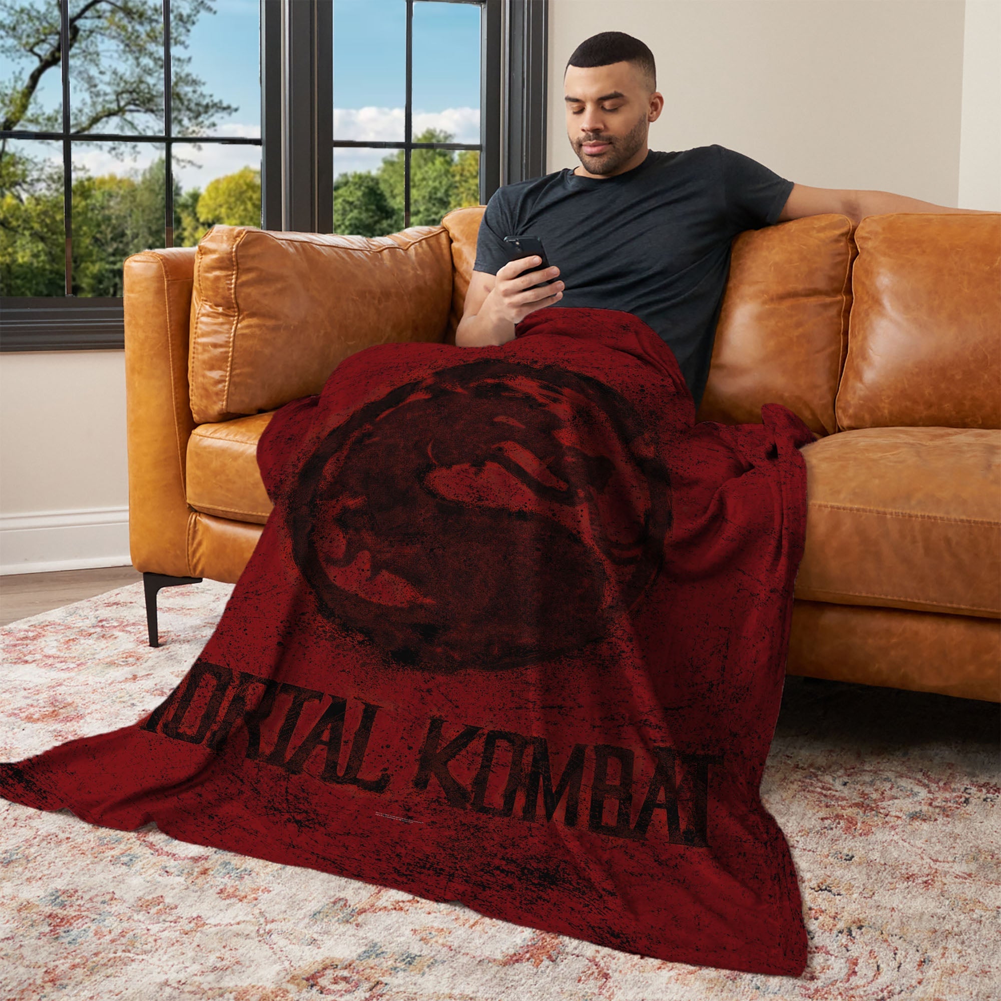 Strike a bold tone in any space with the Mortal Kombat "Logo_Red" Silk Touch Throw Blanket, featuring a gritty, battle-worn design of the iconic dragon emblem. Set against a deep, distressed red background, the fierce black Mortal Kombat logo and matching text bring an unmistakable edge that fans will instantly recognize. Made with ultra-soft silk touch fabric, this throw combines legendary style with everyday comfort. Whether you're powering through game night or just relaxing at home, the warm and lightweight feel makes it a standout addition to your setup. Perfect for beds, couches, or gaming chairs, this officially licensed throw is all about making a statement. Channel the power of Mortal Kombat with a look that¡¯s as intense and iconic as the series itself.
