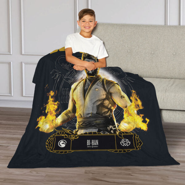 Unleash the fiery power of Scorpion with this Mortal Kombat ¡°Scorpion Bi-Han¡± Silk Touch Throw Blanket. Featuring a high-definition image of Scorpion in his signature pose, flames erupting from his fists, this blanket captures the intense, iconic character from the Mortal Kombat universe. The bold design is further enhanced by golden lettering and dramatic shadows, creating a striking focal point for any fan¡¯s collection. The luxurious, silky-soft texture adds to the overall appeal, ensuring maximum comfort as you wrap yourself in the fiery spirit of Scorpion. Crafted from premium materials, this throw blanket offers more than just visual appeal. Its ultra-soft feel provides the perfect balance of warmth and coziness, making it ideal for lounging on the couch or as an accent piece for your gaming space. Whether you¡¯re rewatching classic Mortal Kombat battles or preparing for a night of gaming, this blanket delivers both comfort and style. Perfect for collectors and fans, this throw brings the fierce energy of Scorpion directly into your home. Whether it¡¯s for display in your fan cave or as a unique gift, it¡¯s a must-have item for anyone who loves the Mortal Kombat series. Let Scorpion¡¯s spirit of vengeance and determination keep you company as you enjoy your favorite shows, movies, or gaming sessions.