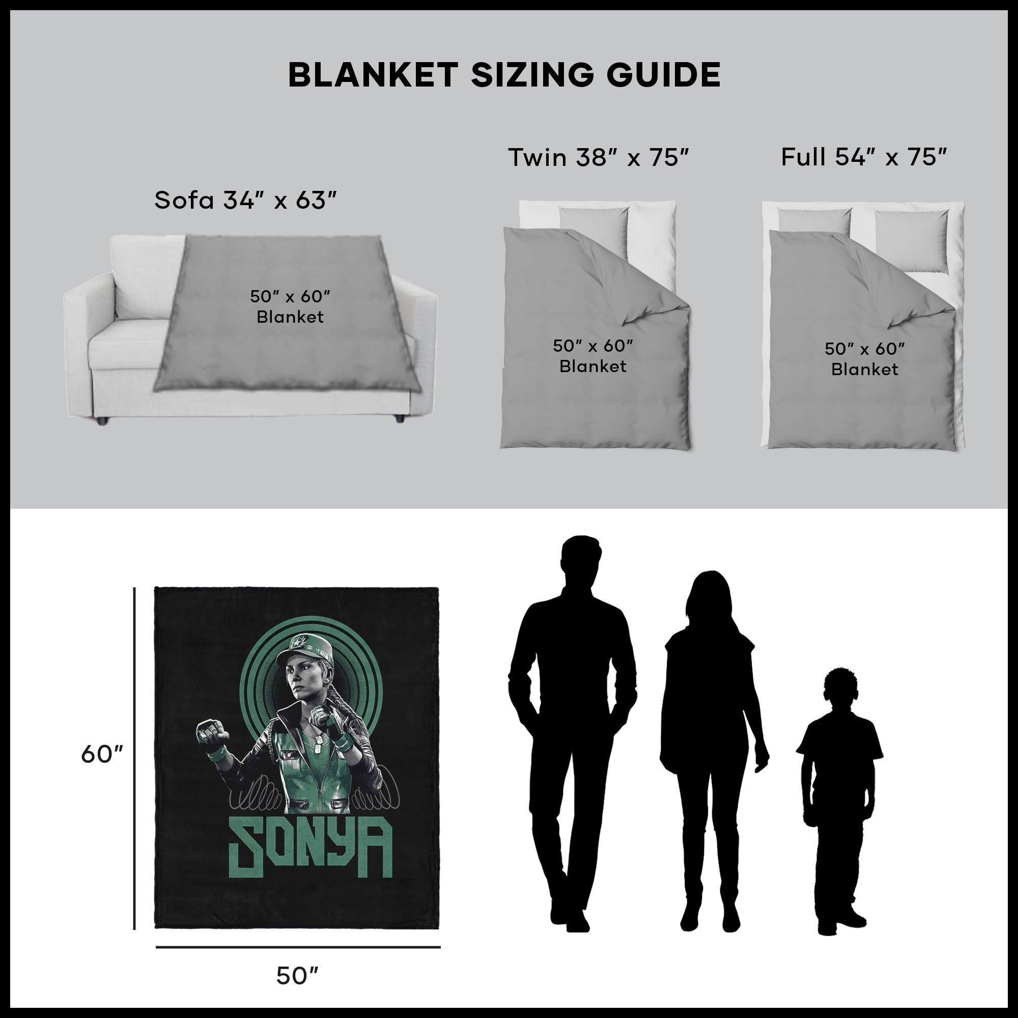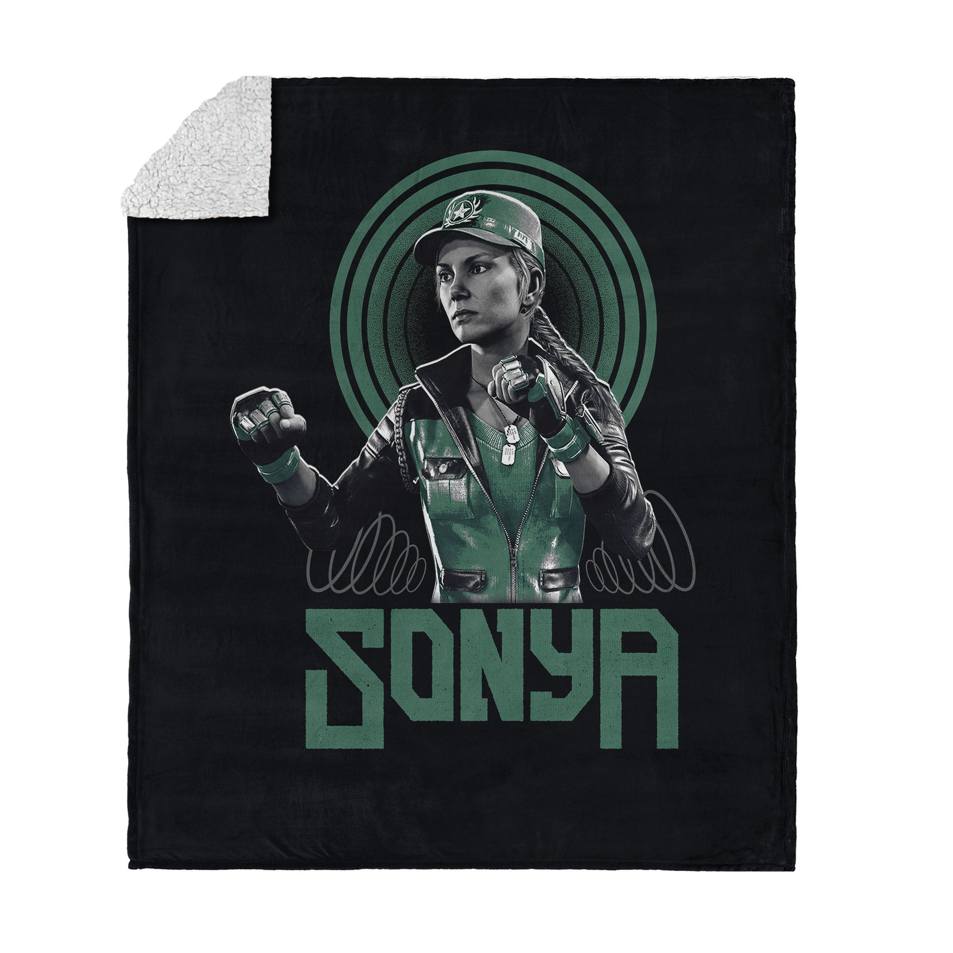 Gear up with fierce attitude and tactical style on the Mortal Kombat ¡°Sonya¡± Silk Touch Sherpa Throw Blanket, spotlighting the fearless fighter in her signature green gear. Poised in a combat stance with bold concentric rings pulsing behind her, Sonya Blade radiates strength, discipline, and unwavering resolve. Made with super-soft silk touch fabric, the blanket delivers an incredibly cozy feel while capturing high-impact visual details. Whether you¡¯re kicking back during game night or adding edge to your room, it¡¯s a go-to essential that combines comfort with combat-ready vibes. Perfect for fans of Mortal Kombat and legendary characters, this officially licensed throw adds a bold punch of personality to any space. Whether on the couch, bed, or over your favorite chair, it¡¯s a tribute to one of Earthrealm¡¯s most iconic champions.