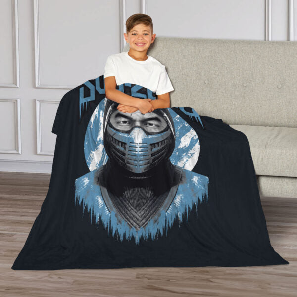? Featuring an intense image of Sub-Zero, the blanket captures his iconic helmet and armored suit against a backdrop of icy blue hues.