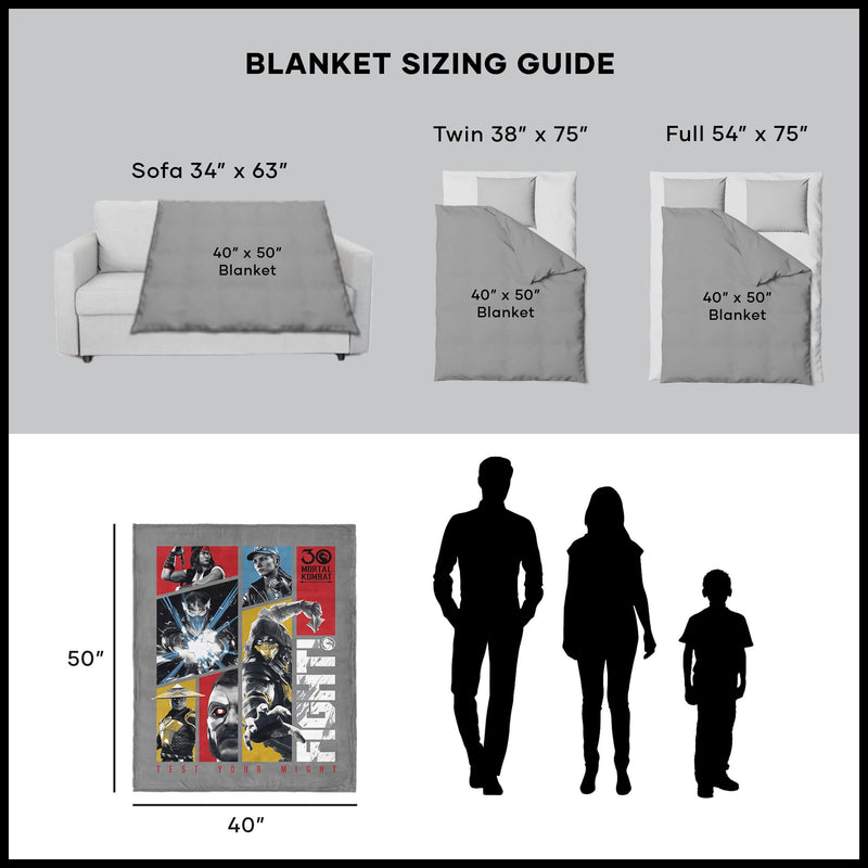 Gear up for battle with the Mortal Kombat ¡°Test Your Might¡± Silk Touch Throw Blanket. Featuring a dynamic, action-packed design, this blanket showcases some of the most iconic characters from the Mortal Kombat universe, including Scorpion, Sub-Zero, and Sonya Blade. Each character is framed in bold blocks of red, yellow, and gray, giving the blanket an edgy, comic-book feel that captures the intensity of the game. ¡°Test Your Might¡± boldly stretches across the bottom, a perfect homage to the series¡¯ legendary challenges and brutal fighting mechanics. Whether you¡¯re gearing up for your next fight in the game or simply enjoying the thrill of Mortal Kombat lore, this blanket lets you show off your allegiance to the franchise in style. Made with ultra-soft material, this Silk Touch Throw Blanket provides both comfort and durability, making it the perfect addition to any fan¡¯s collection. Display it proudly in your game room, drape it over your couch, or curl up with it while revisiting some of the greatest battles in fighting game history.