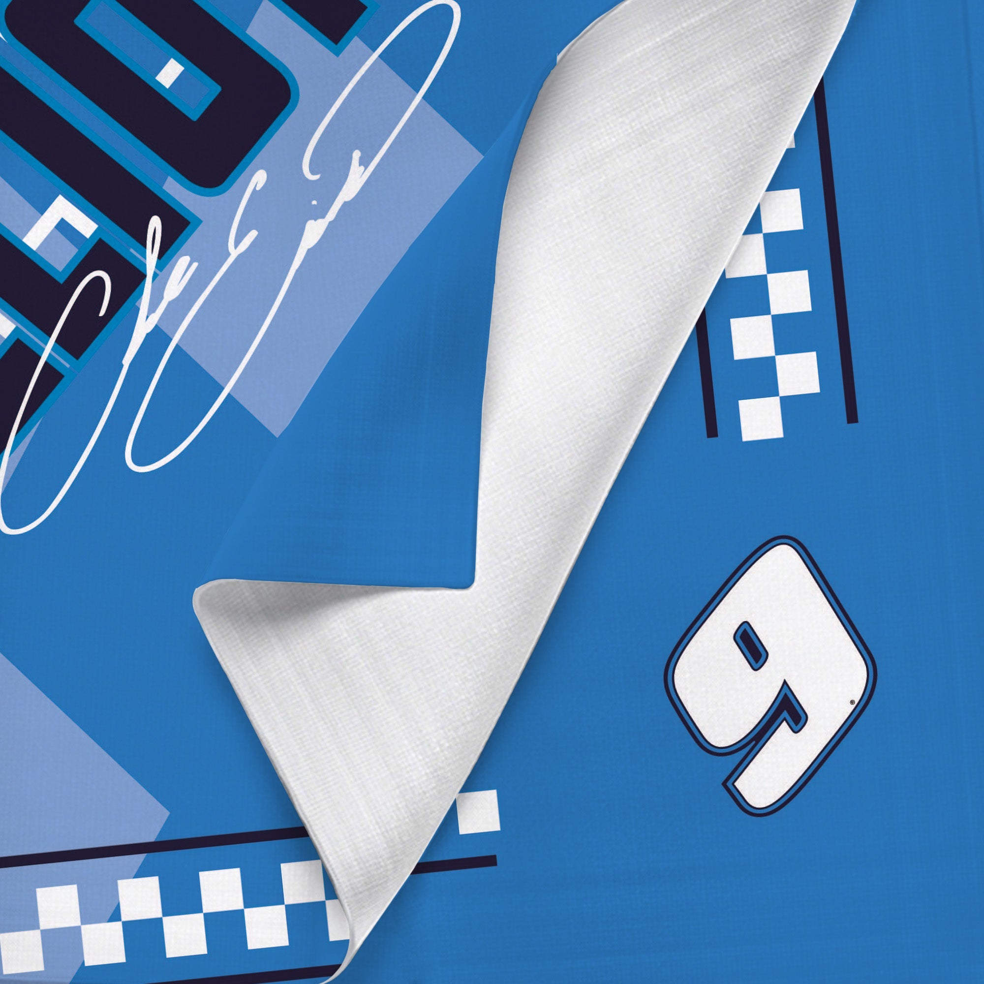 ? Featuring Chase Elliot's bold block name and signature front and center, surrounded by dynamic checkered flag stripes, a repeating No. 9, and a cool blue diamond pattern for that true race-day vibe.