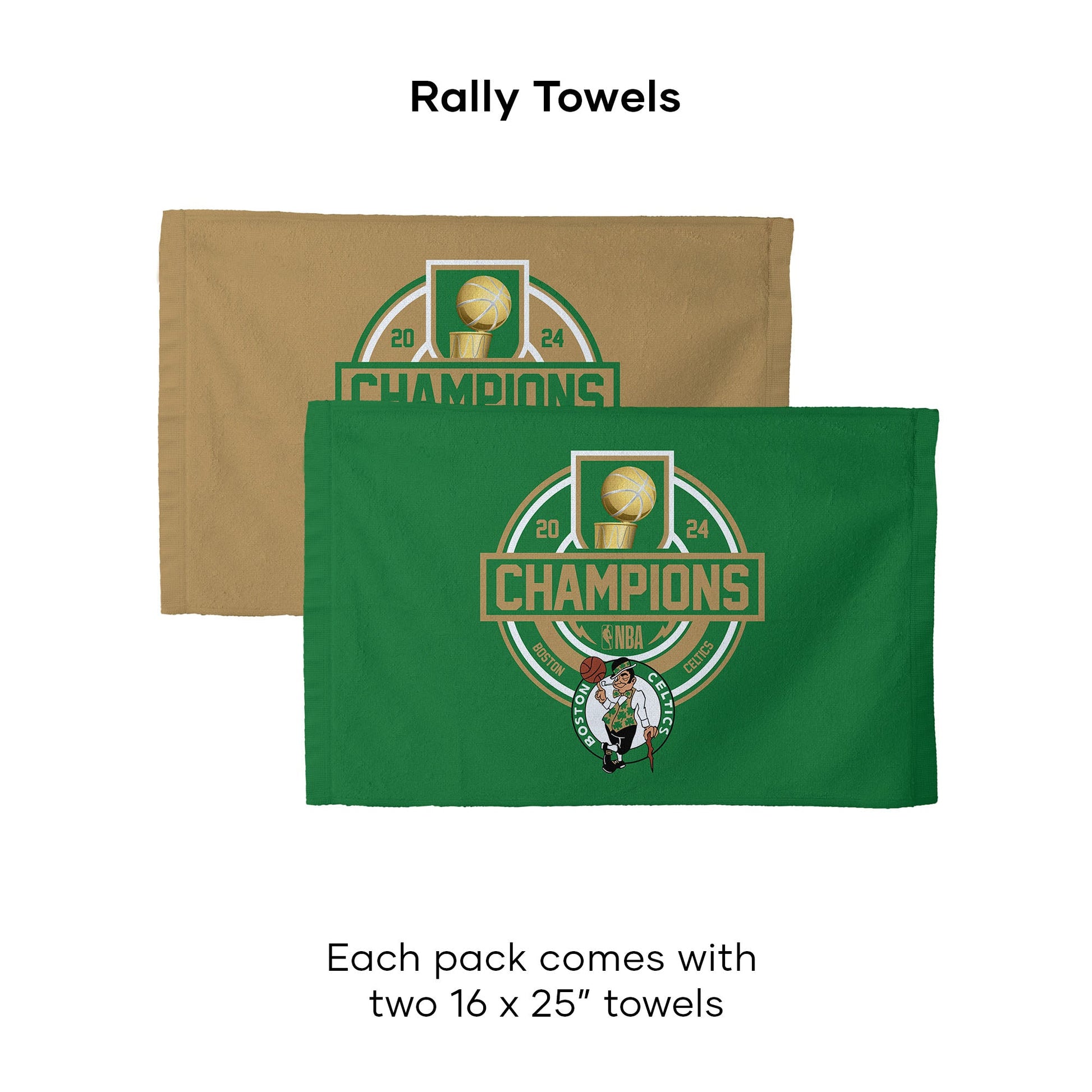 Elevate your fan experience with the NBA Championship "2 for 1" 2 Pack Printed Rally Towels, the ultimate accessories for celebrating your team's triumphant victory in the 2024 NBA season. This dynamic duo isn't just any pair of rally towels ¨C they're a powerful symbol of your unwavering support and the undeniable dominance of your team. Each towel features your team's iconic logo alongside the unmistakable declaration of being the 2024 Champions, ensuring you double down on your celebration. With each towel boasting a different team color, you have the perfect opportunity to showcase your team pride in bold fashion. Whether you're waving them proudly from the stands, draping them over your shoulders, or displaying them as a proud emblem of your team's success, these towels are sure to turn heads and rally fellow fans to your side. Show your unwavering support for your team and make every game day a memorable event with this essential duo.