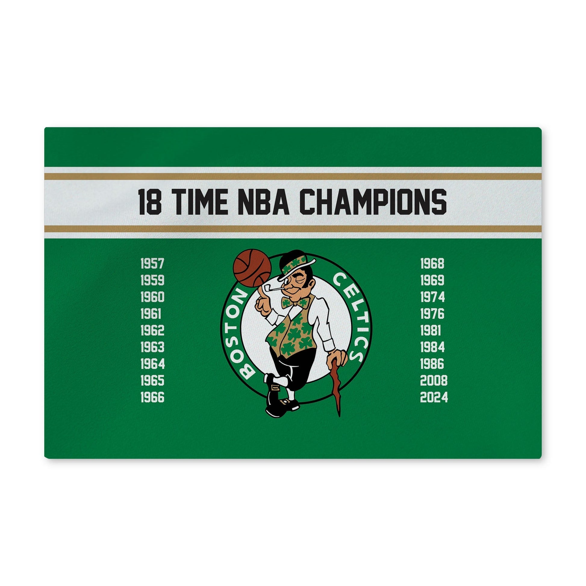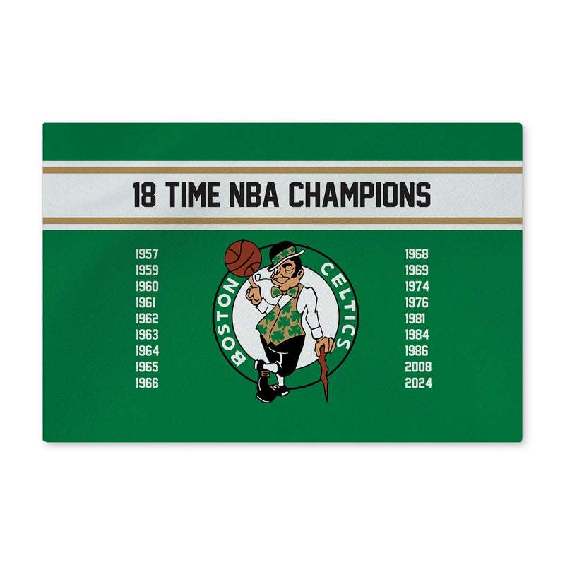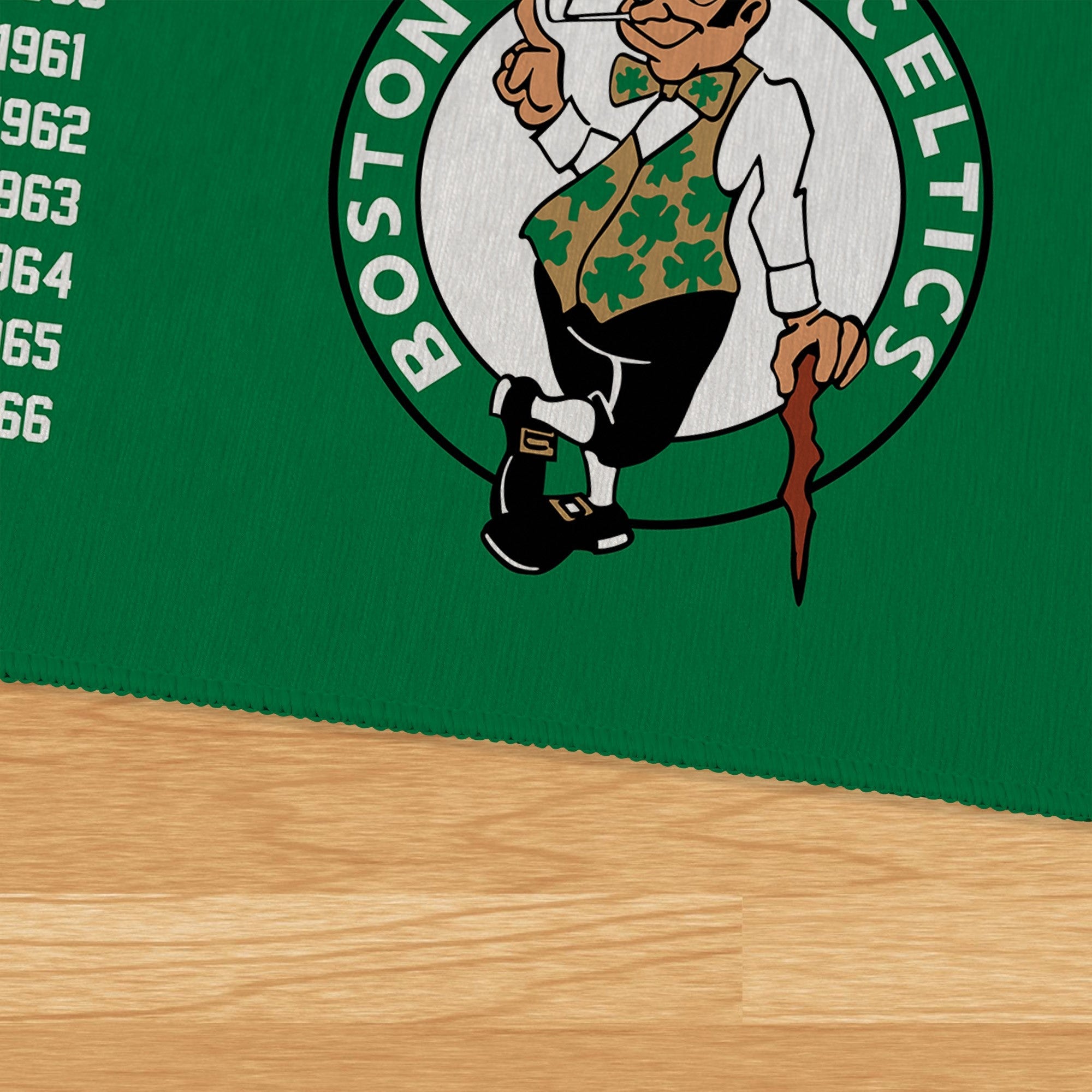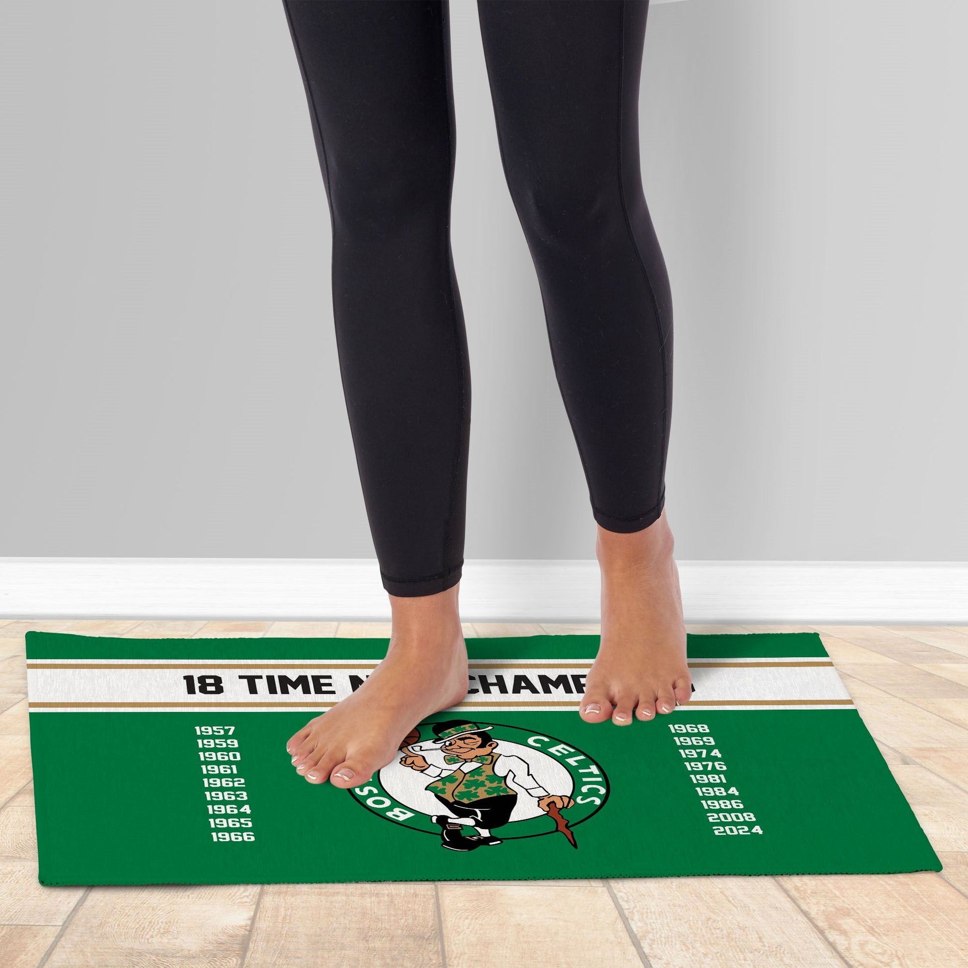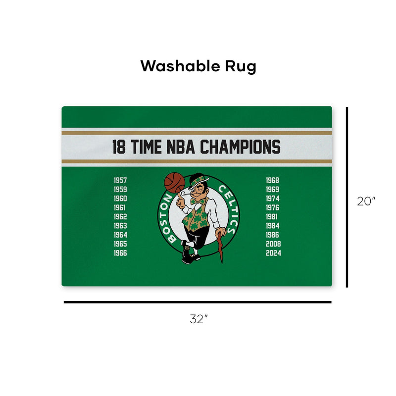 Enhance your home with this Boston Celtics 2024 NBA Champions "18 Banners" Washable Rug. This rug showcases the iconic Celtics leprechaun logo and proudly lists all 18 championship years, making it a perfect addition for any true fan. Designed for both beauty and practicality, the washable material ensures your rug stays fresh and vibrant, no matter where you place it. Ideal for living rooms, bedrooms, or offices, it adds a touch of championship pride to any space. It's not just decor; it's a piece of Celtics history. It's more than just a statement of team spirit; it's a tribute to the Celtics' legendary achievements.