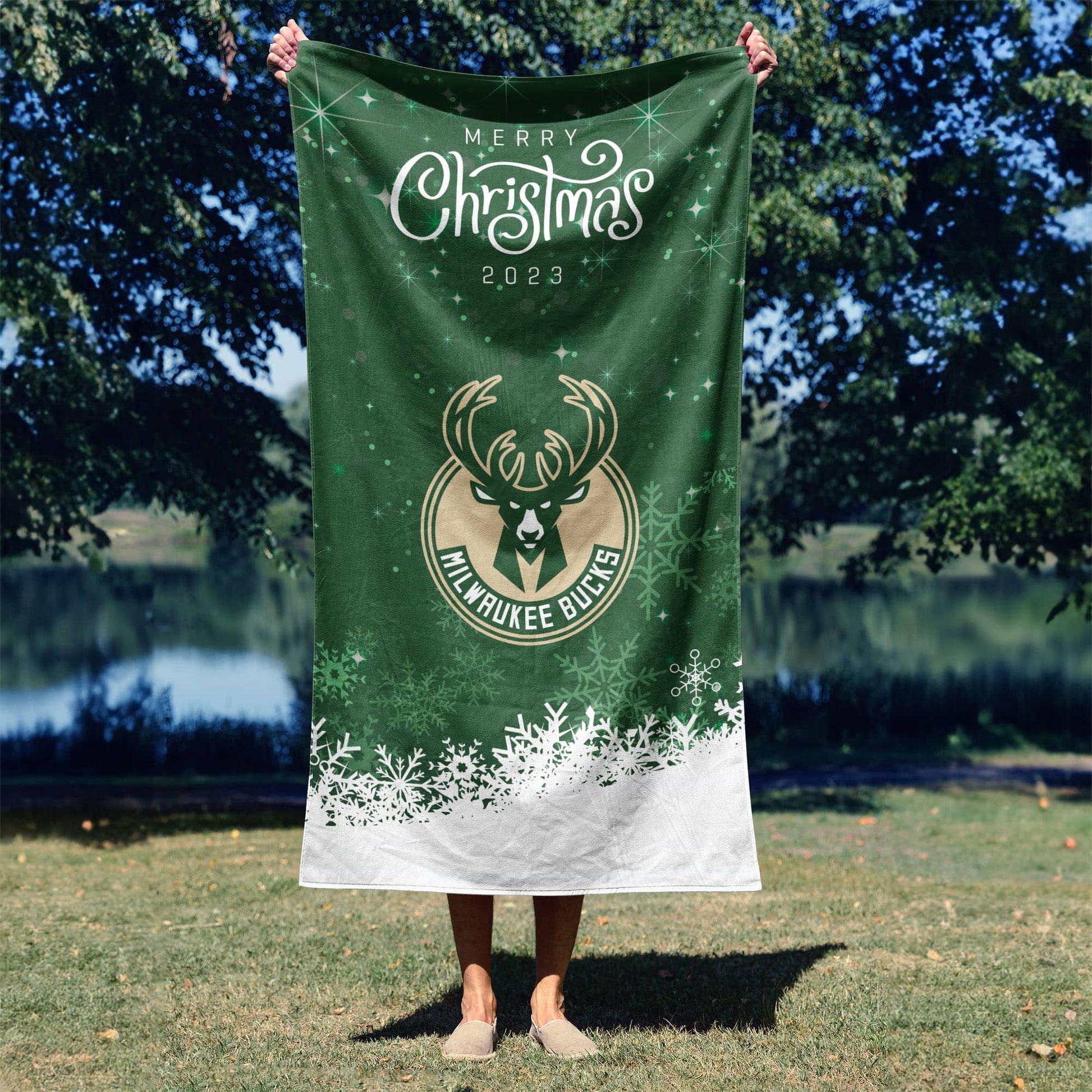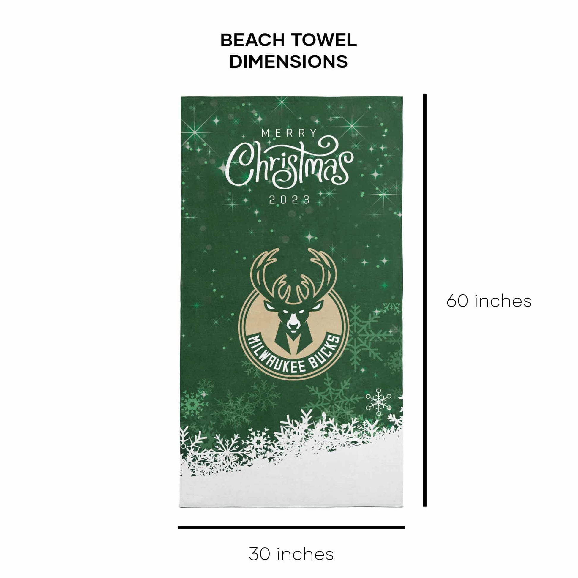 NBA Milwaukee Bucks Christmas 2023 Beach Towel 30x60 Inches
