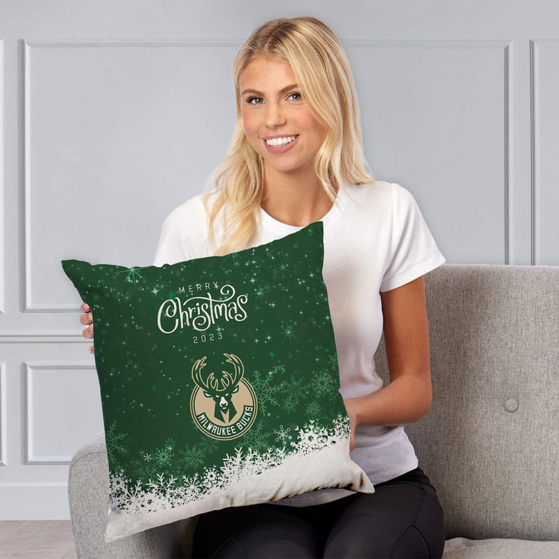 NBA Milwaukee Bucks Christmas 2023 Throw Pillow 18x18 Inches