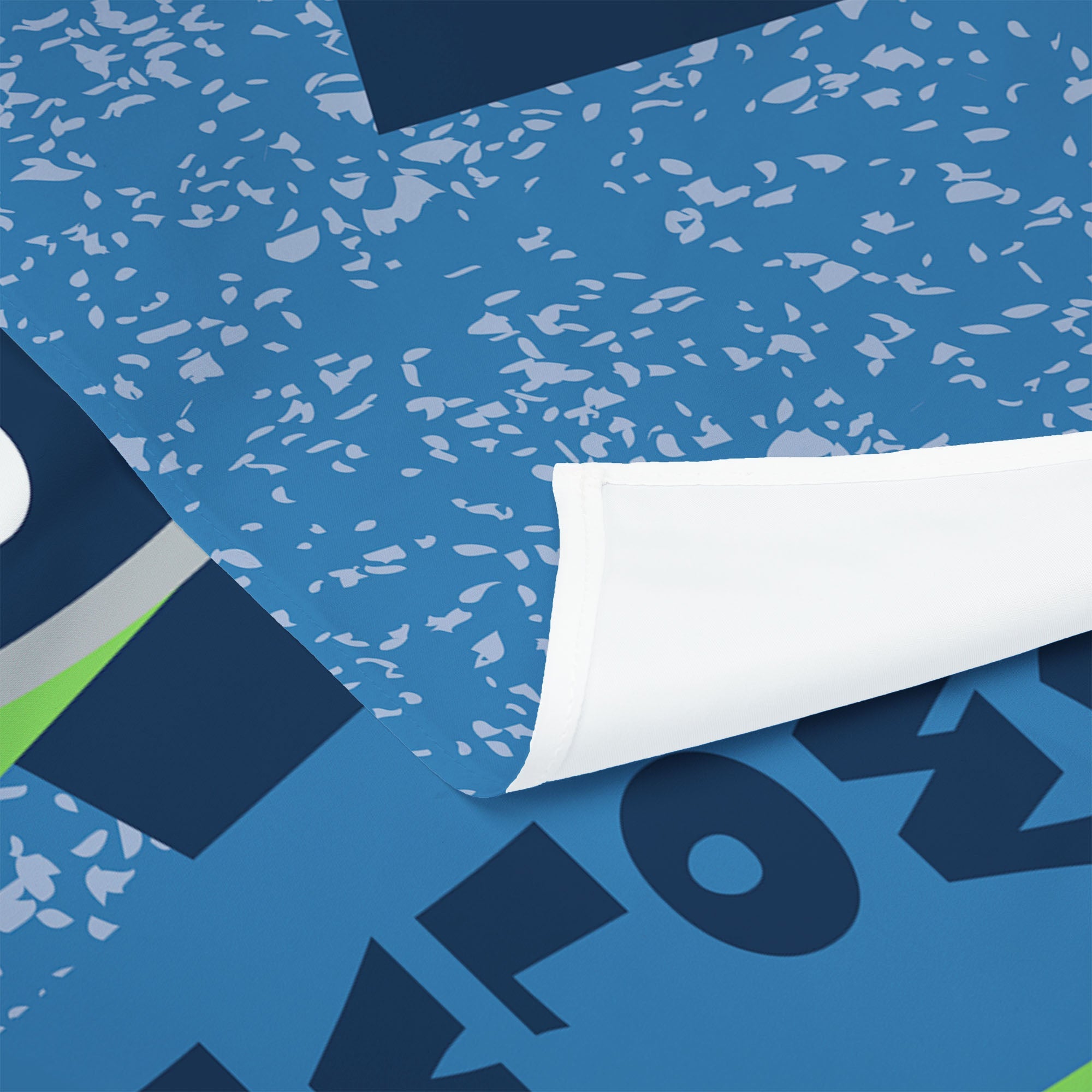? Features your favorite team's name, logo, and colors on a playful, dynamic graphic background