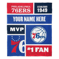 NBA Philadelphia 76ers Colorblock Personalized Silk Touch Throw Blanket 50x60 Inches