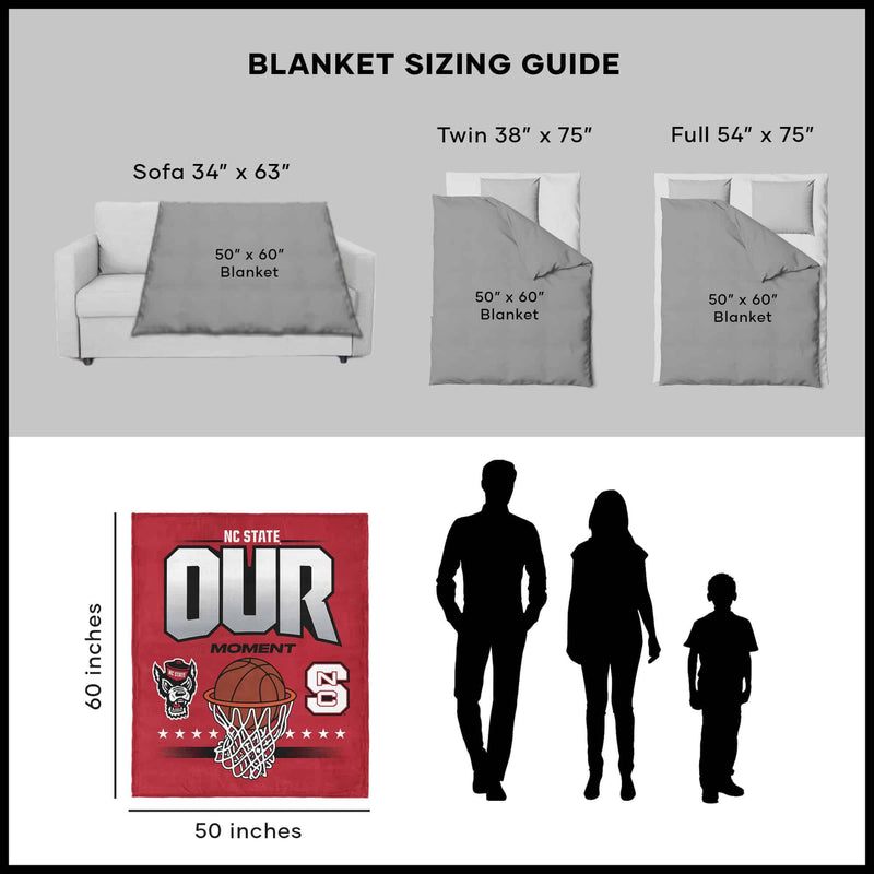 Relive the thrill of the game with the NC State Wolfpack ¡°Memory Lane¡± Silk Touch Throw. Featuring bold NC State logos, a basketball, hoop, and the inspiring words ¡°Our Moment,¡± this throw is a must-have for any devoted fan. Crafted from luxurious silk touch fabric, this throw is as soft as a game-winning shot. It¡¯s perfect for adding a touch of Wolfpack pride to your living space. It¡¯s more than just a blanket; it¡¯s a symbol of your unwavering support for the Wolfpack and team victories.