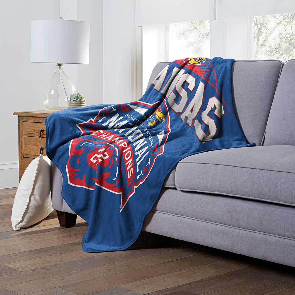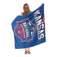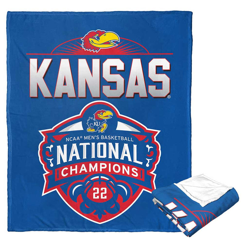 - Celebrate the Kansas Jayhawks basketball team as the 2022 National Champions with an Officially Licensed NCAA Silk Touch Throw Blanket by TheNorthwest! This winning throw features the Kansas logo and team name above 2022 National Champions. Bring this 50"x 60" silky soft and cozy throw to the game or use it while taking a nap to show off your team pride loud and proud.