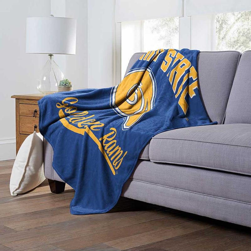 Proudly show off your alma mater or the school you love to root for with this Officially Licensed NCAA "Alumni" Silk Touch Throw Blanket by TheNorthwest. This cozy throw blanket is the perfect game day accessory. This 50"x 60" silky-soft throw blanket is perfect for keeping warm at the game, using on a picnic, or cuddling under on your couch. It boldly features a retro school logo in the center, surrounded by the team name, on a solid color background. This throw has a neutral color backside.