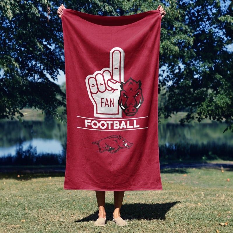 Catch some rays with this Arkansas Razorbacks Number 1 Fan Beach Towel. Every Razorbacks fan needs this Beach Towel, which features a school logo, mascot, and the iconic "#1 fan" hand and will look great poolside.