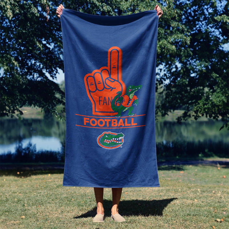 Catch some rays with this Florida Gators Number 1 Fan Beach Towel. Every Gators fan needs this Beach Towel, which features a school logo, mascot, and the iconic "#1 fan" hand and will look great poolside.