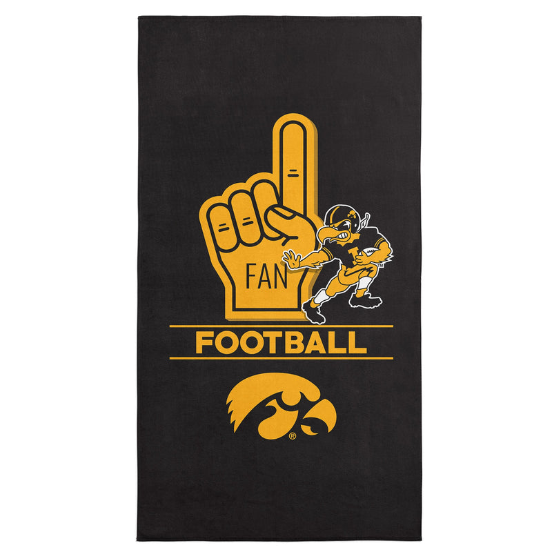 Catch some rays with this Iowa Hawkeyes Number 1 Fan Beach Towel. Every Hawkeyes fan needs this Beach Towel, which features a school logo, mascot, and the iconic "#1 fan" hand and will look great poolside. Go Hawkeyes!