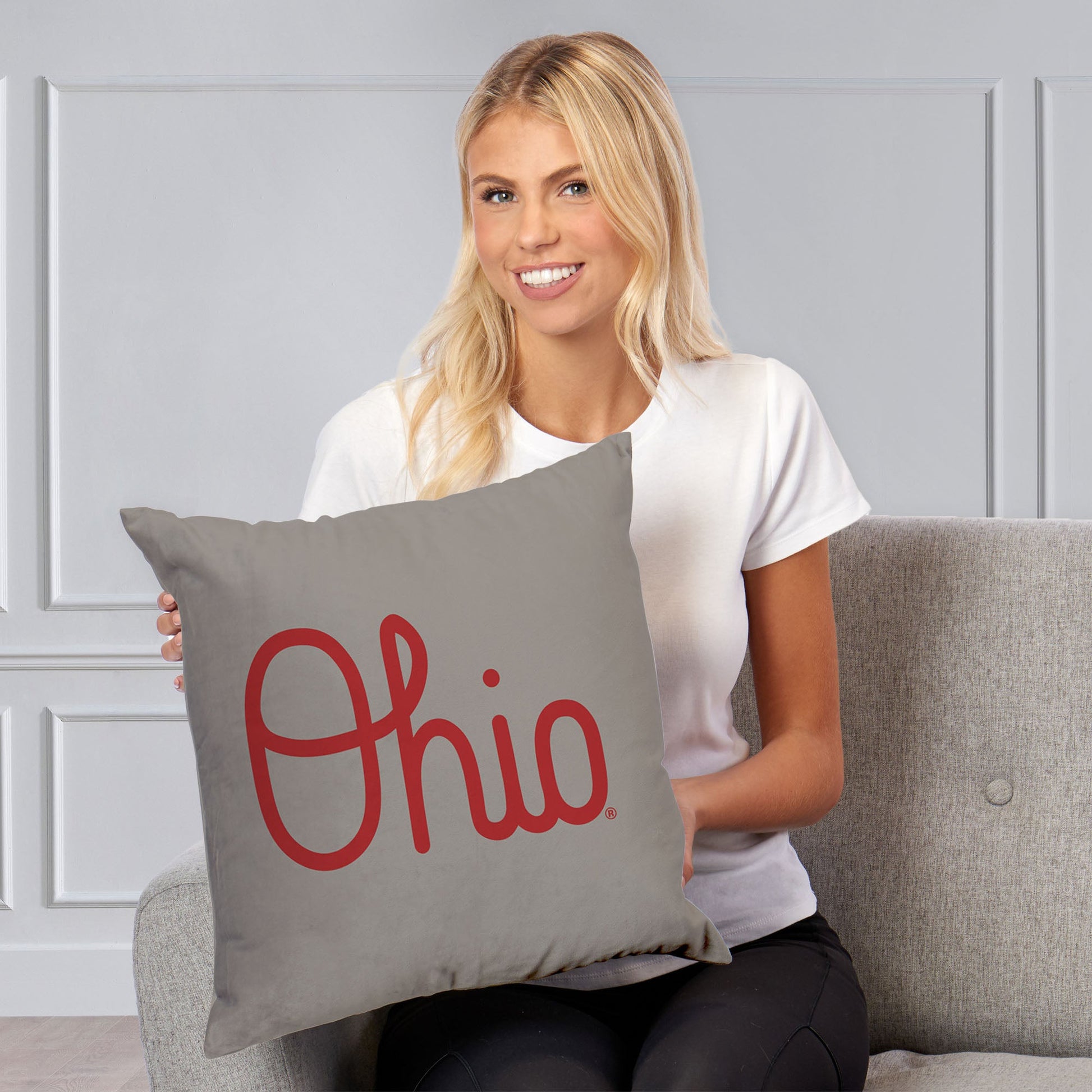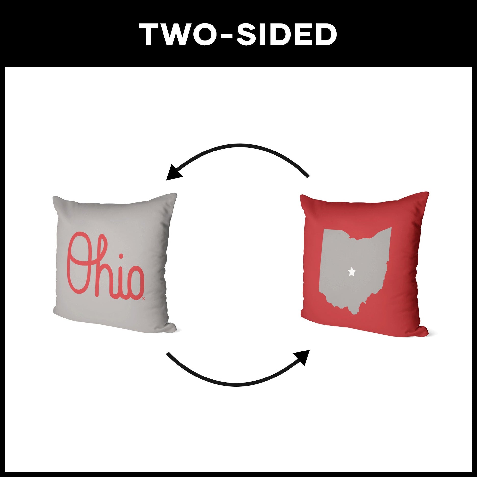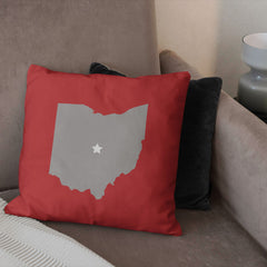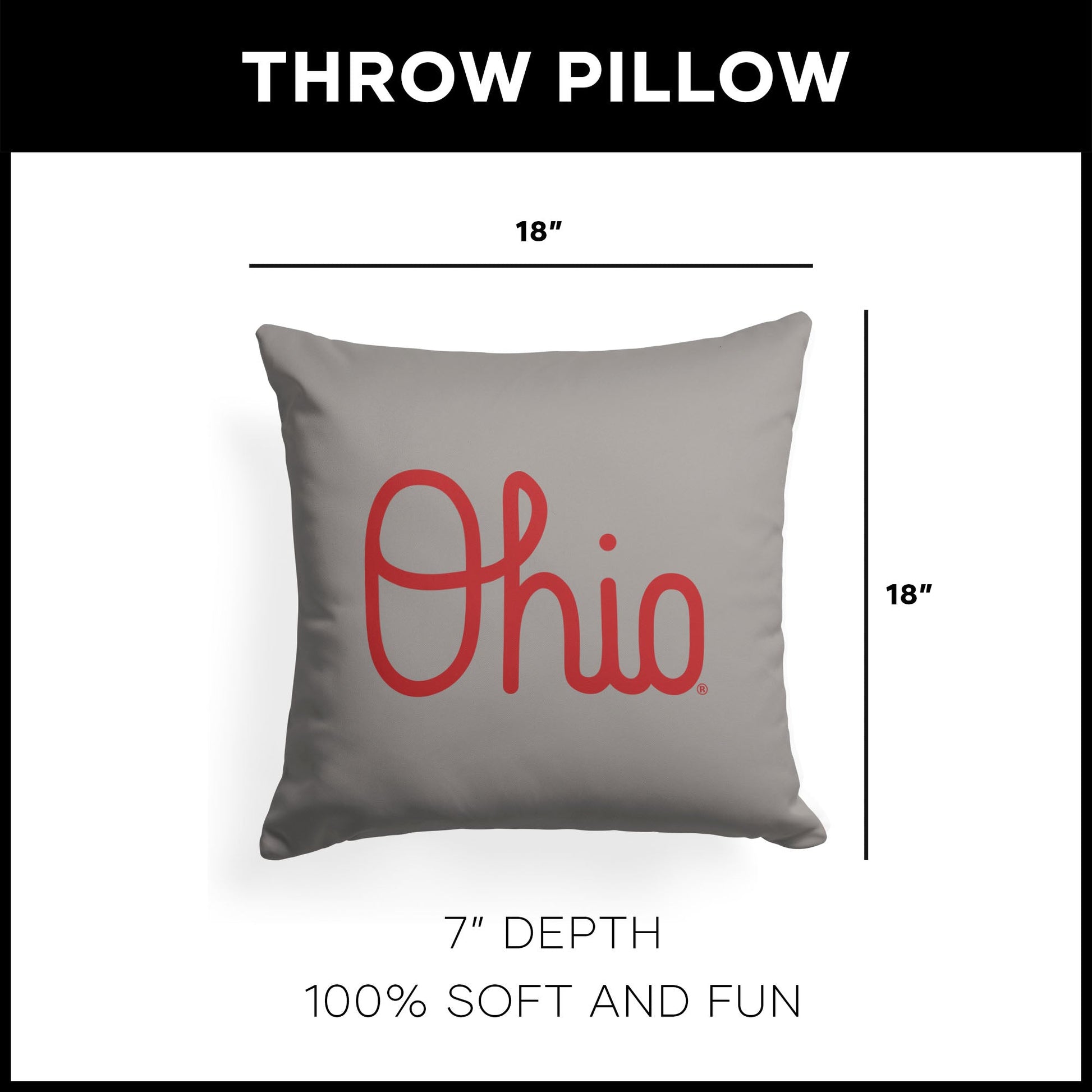 Add a touch of Ohio State charm to your space with the Ohio State ¡°Script¡± Throw Pillow! This soft and cozy pillow is perfect for showcasing your Buckeye pride. One side features the word ¡°OHIO¡± in elegant script, while the other side depicts the state of Ohio with a star denoting Columbus, home of the Buckeyes!