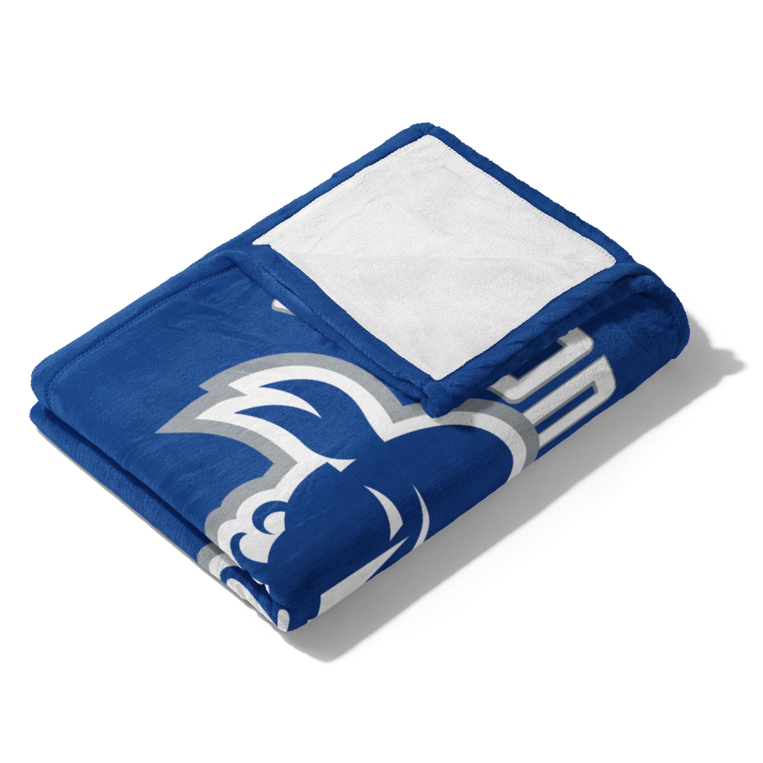 Proudly show off your alma mater or the school you love to root for with this Officially Licensed NCAA "Alumni" Silk Touch Throw Blanket by TheNorthwest. This cozy throw blanket is the perfect game day accessory. This 50"x 60" silky-soft throw blanket is perfect for keeping warm at the game, using on a picnic, or cuddling under on your couch. It boldly features a retro school logo in the center, surrounded by the team name, on a solid color background. This throw has a neutral color backside.