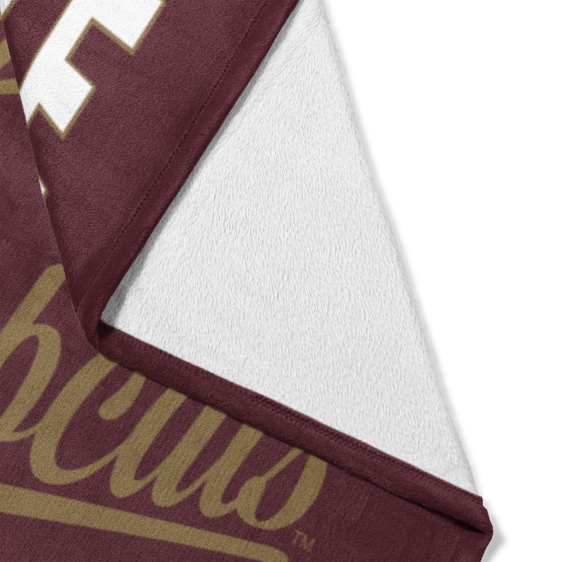 Proudly show off your alma mater or the school you love to root for with this Officially Licensed NCAA "Alumni" Silk Touch Throw Blanket by TheNorthwest. This cozy throw blanket is the perfect game day accessory. This 50"x 60" silky-soft throw blanket is perfect for keeping warm at the game, using on a picnic, or cuddling under on your couch. It boldly features a retro school logo in the center, surrounded by the team name, on a solid color background. This throw has a neutral color backside.