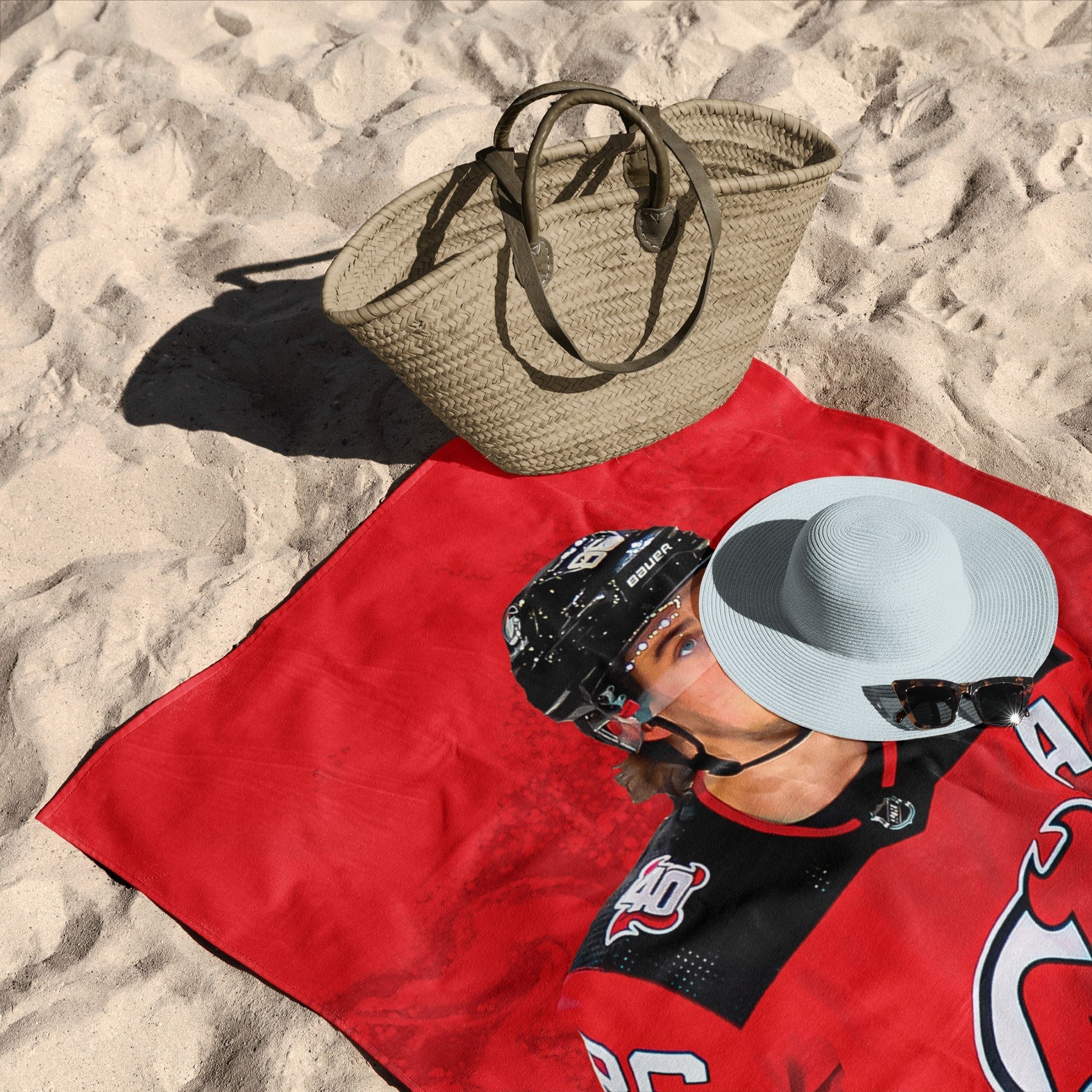 Feel the energy of the game wherever you are with this NHL beach towel, featuring an image of your favorite player in the middle of a thrilling play. Whether you're lounging by the pool or soaking up the sun at the beach, this towel brings the excitement of hockey season to your summer. Your player's intense action shot pops against a bold backdrop of team colors, instantly standing out and showing off your team spirit. Crafted with soft, absorbent fabric, this towel is both comfortable and durable. Whether you're using it after a dip in the ocean or just as a statement piece at the beach, it¡¯s a stylish and functional tribute to your favorite player and team.