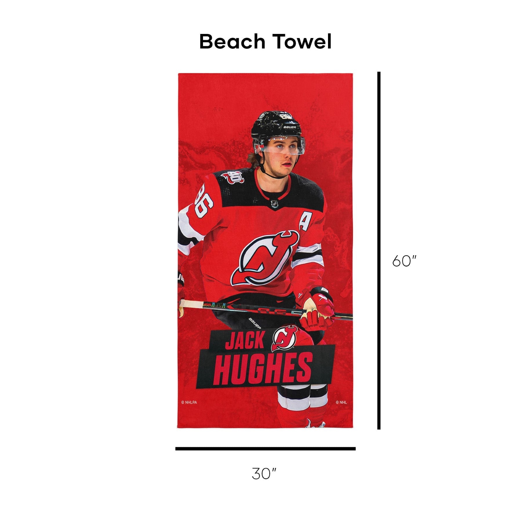 New Jersey Devils Jack Hughes NHL Beach Towel 30X60 Inches