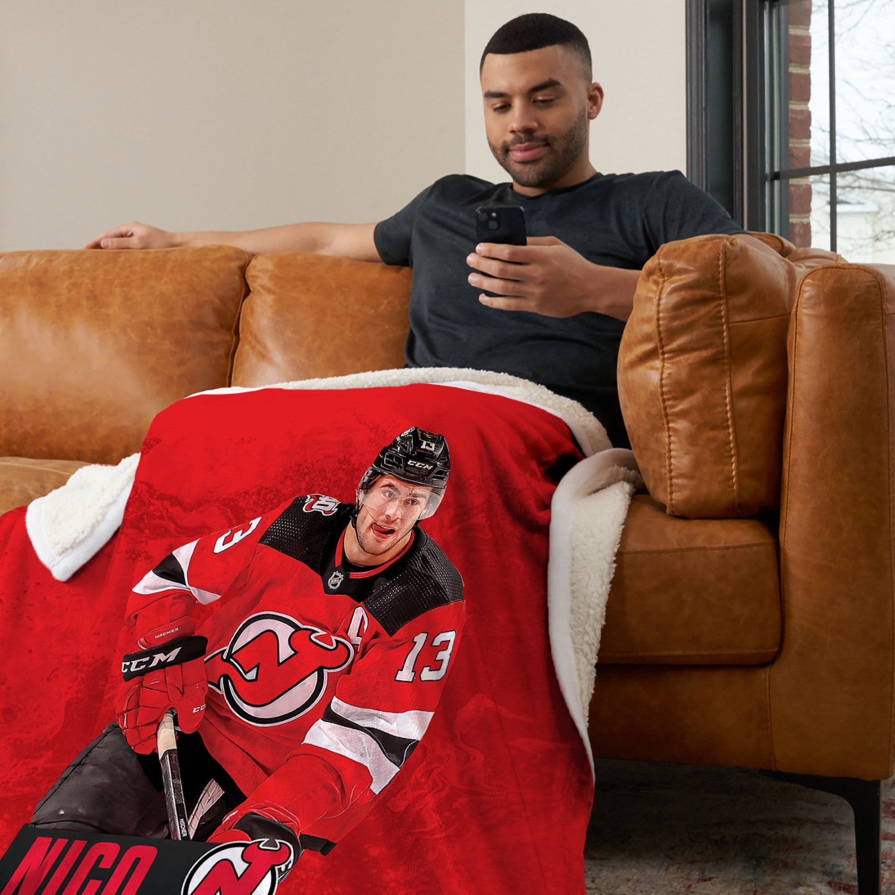 New Jersey Devils Nico Hischier NHL Silk Touch Sherpa Throw Blanket 50X60 Inches