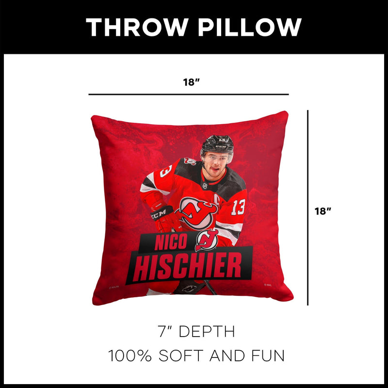 New Jersey Devils Nico Hischier NHL Throw Pillow 18X18 Inches