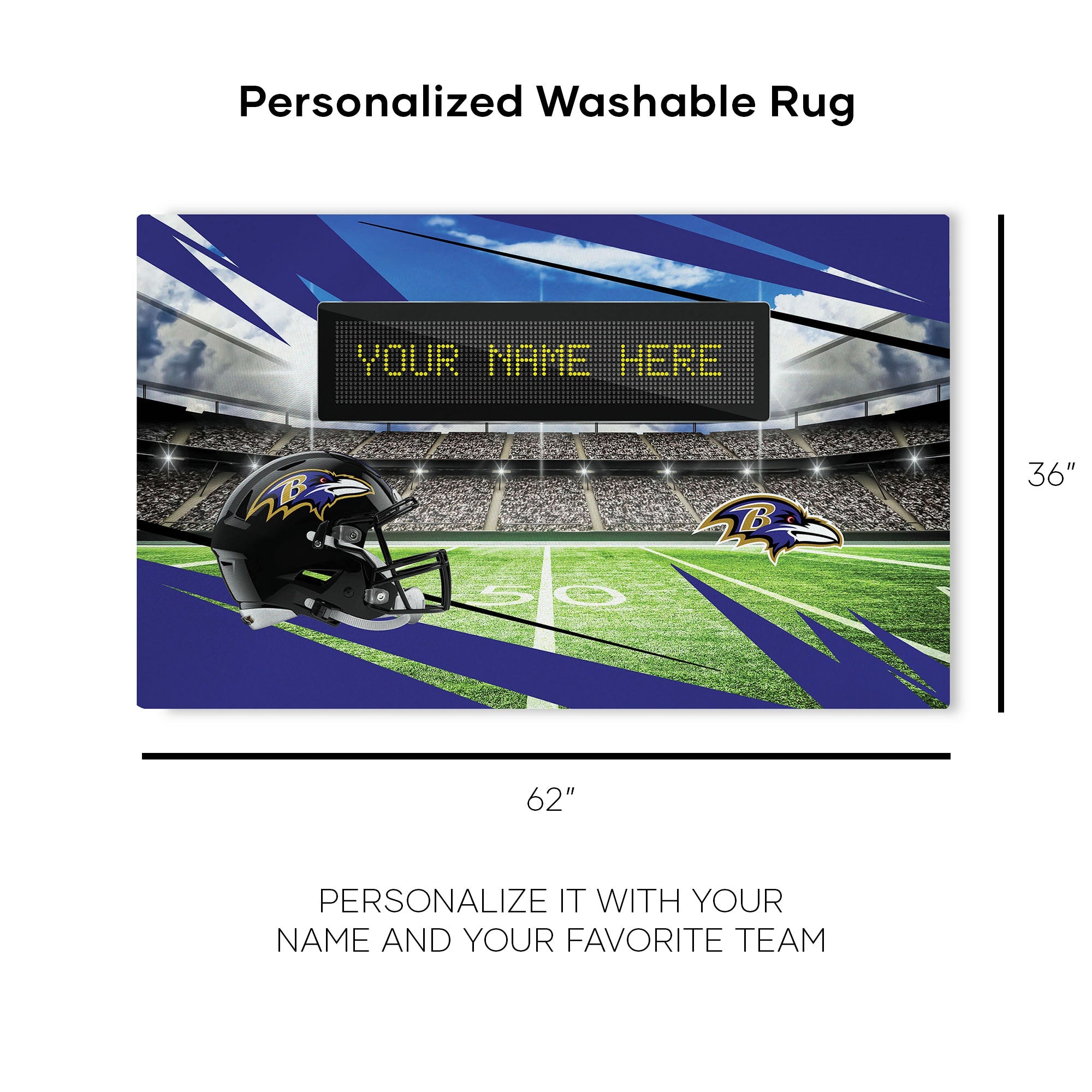 NFL Baltimore Ravens Scoreboard Personalized Washable Rug 32x62 Inches