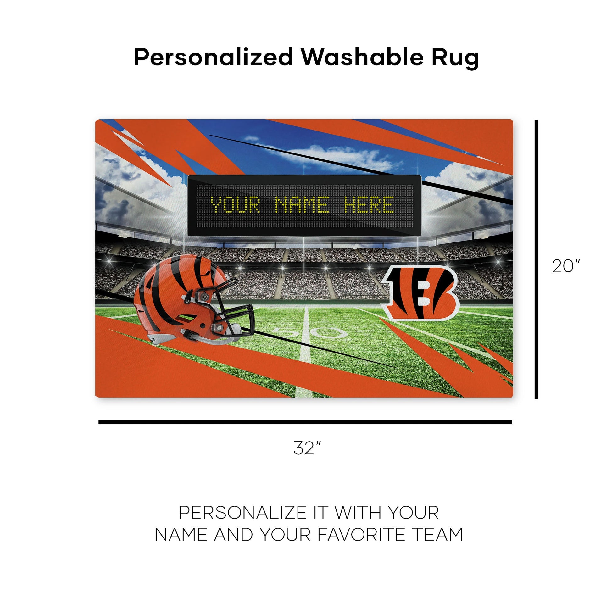 NFL Cincinnati Bengals Scoreboard Personalized Washable Rug 20x32 Inches