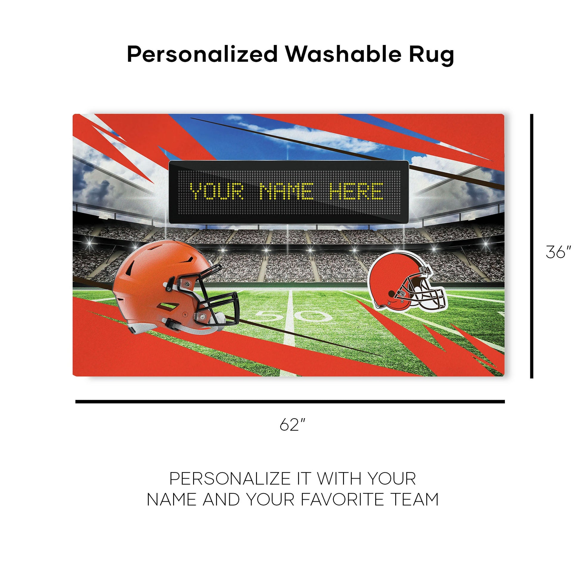 NFL Cleveland Browns Scoreboard Personalized Washable Rug 32x62 Inches