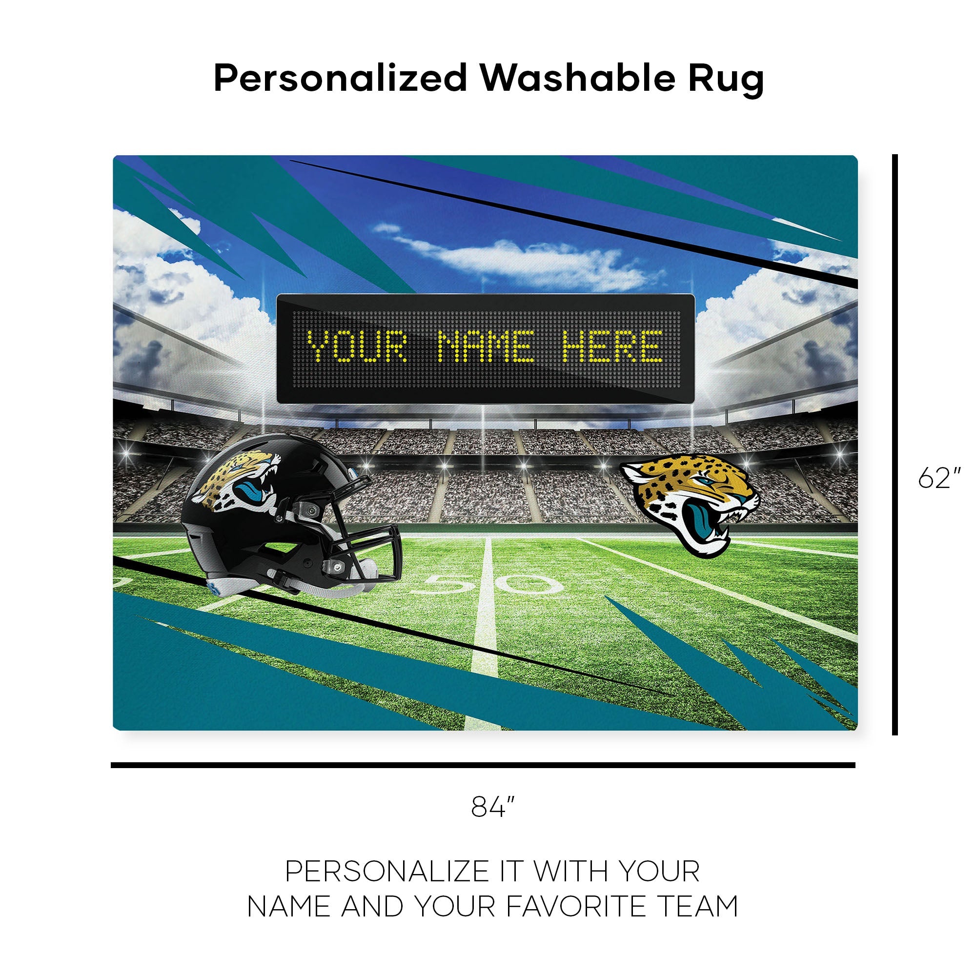 NFL Jacksonville Jaguars Scoreboard Personalized Washable Rug 62x84 Inches