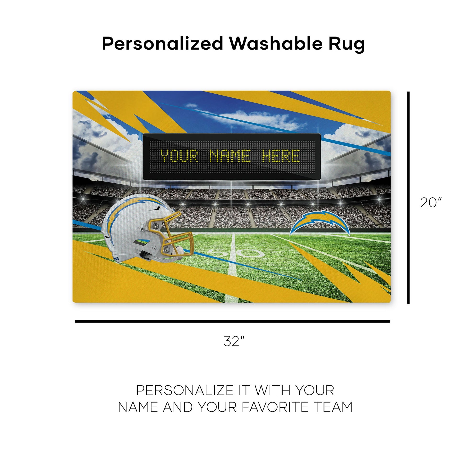 NFL Los Angeles Chargers Scoreboard Personalized Washable Rug 20x32 Inches