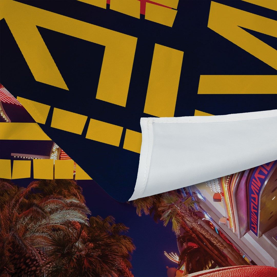 - Features your team's logo, a symbolic Super Bowl football, on a captivating backdrop of Las Vegas.