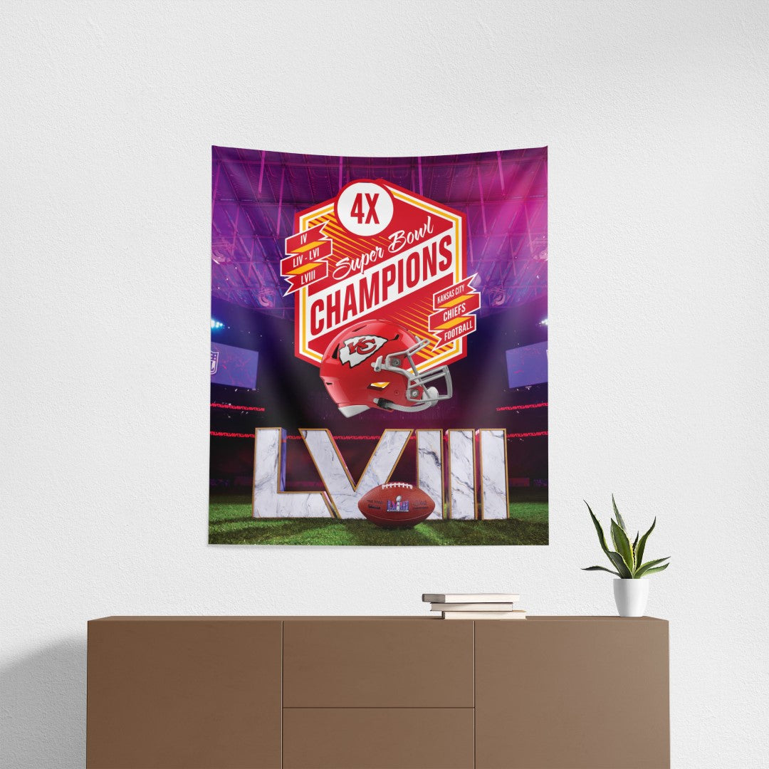 NFL Super Bowl 58 Kansas City Chiefs Re Take Multi Champs Wall Hanging 50x60 Inches