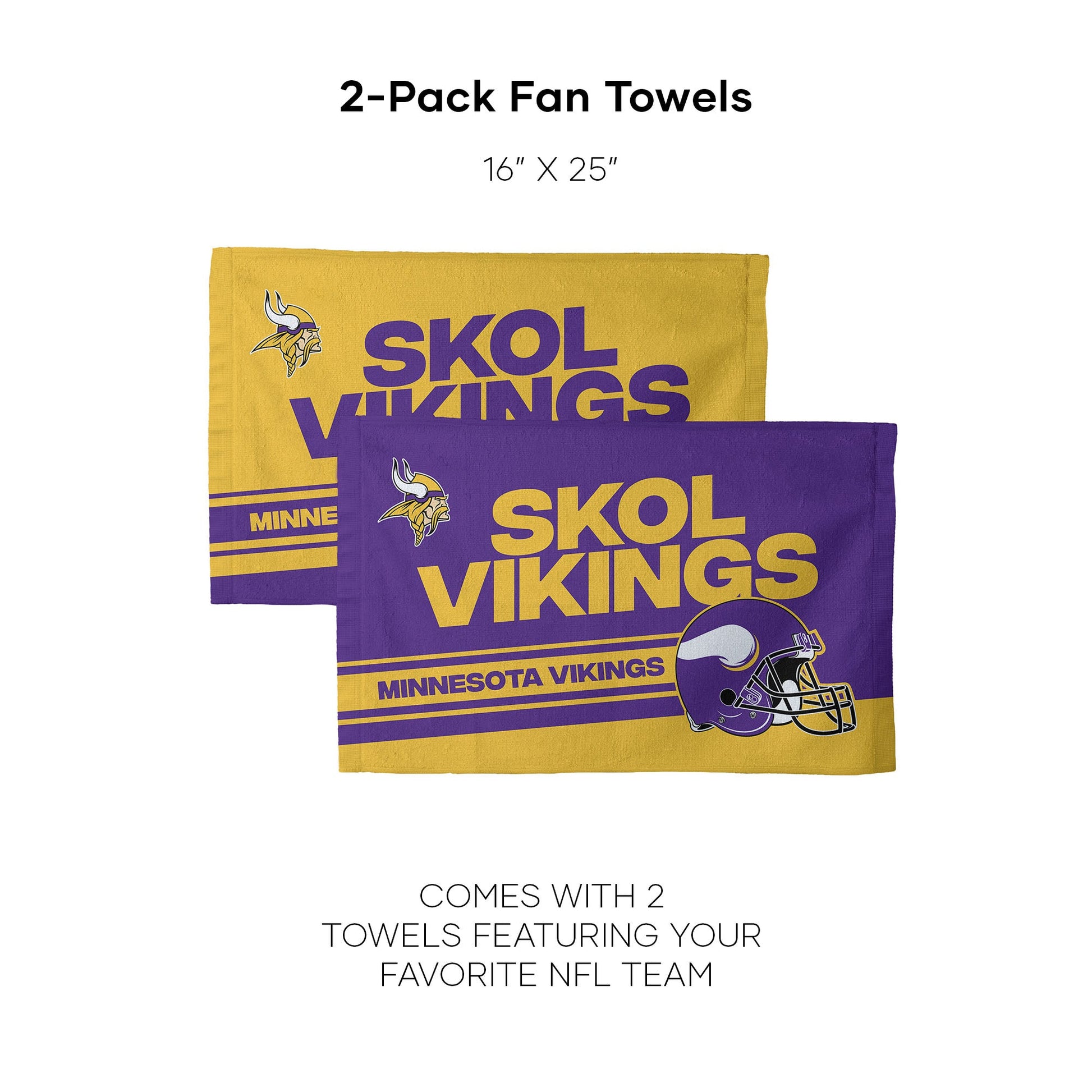 NFL Minnesota Vikings Play Action Fan Towel 2 Pack 16 x 25 Inches