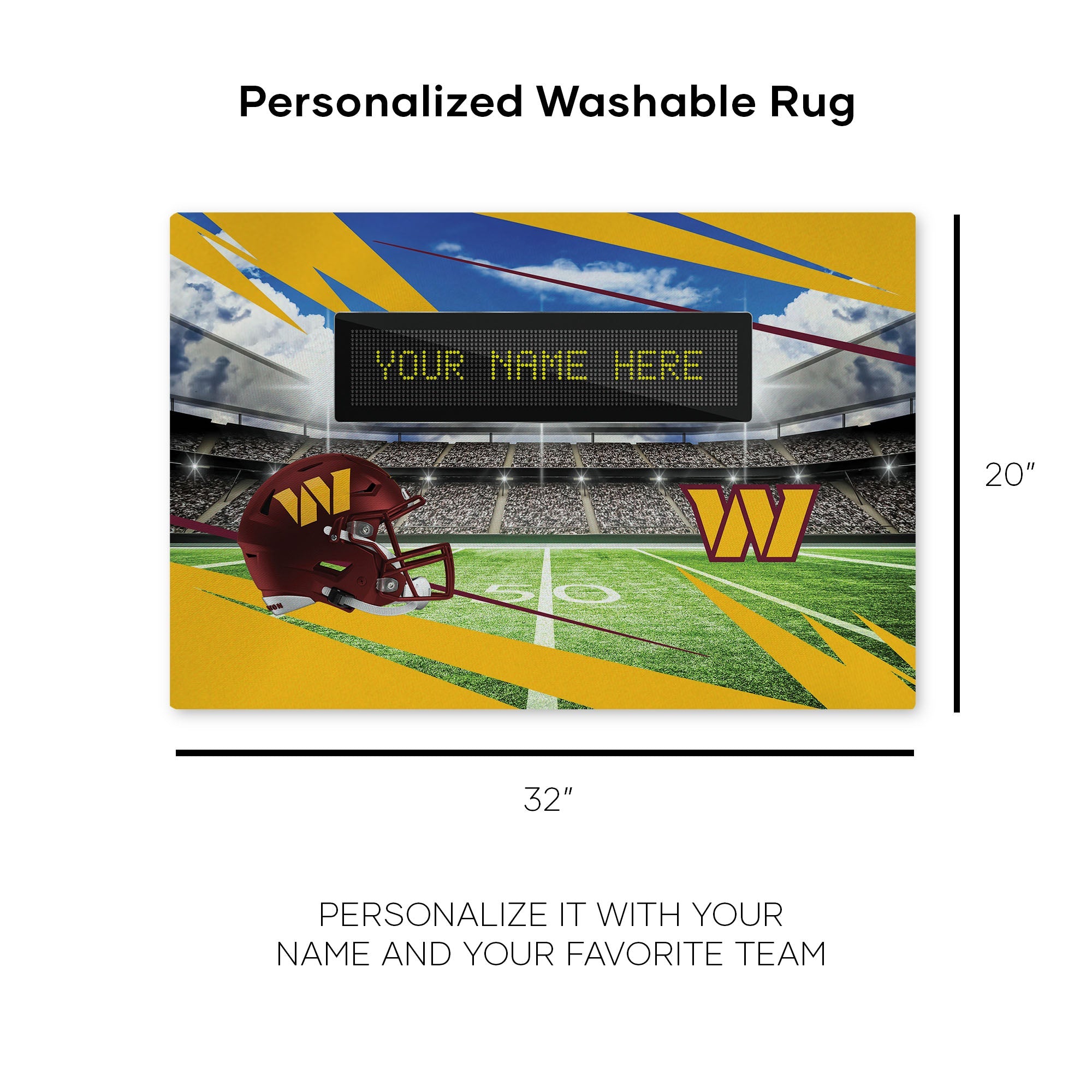 NFL Washington Commanders Scoreboard Personalized Washable Rug 20x32 Inches